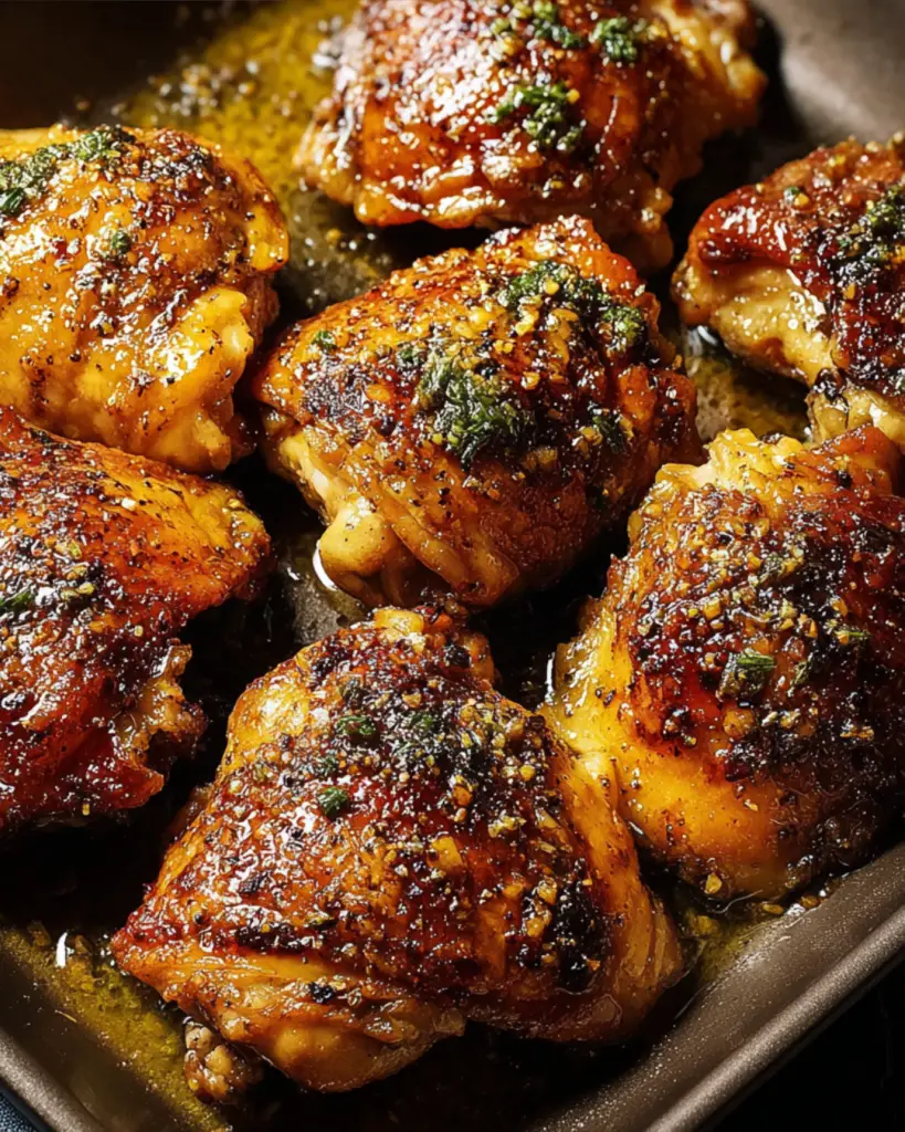 A hot oven helps the chicken thighs develop a beautiful golden-brown crust while keeping the inside juicy.