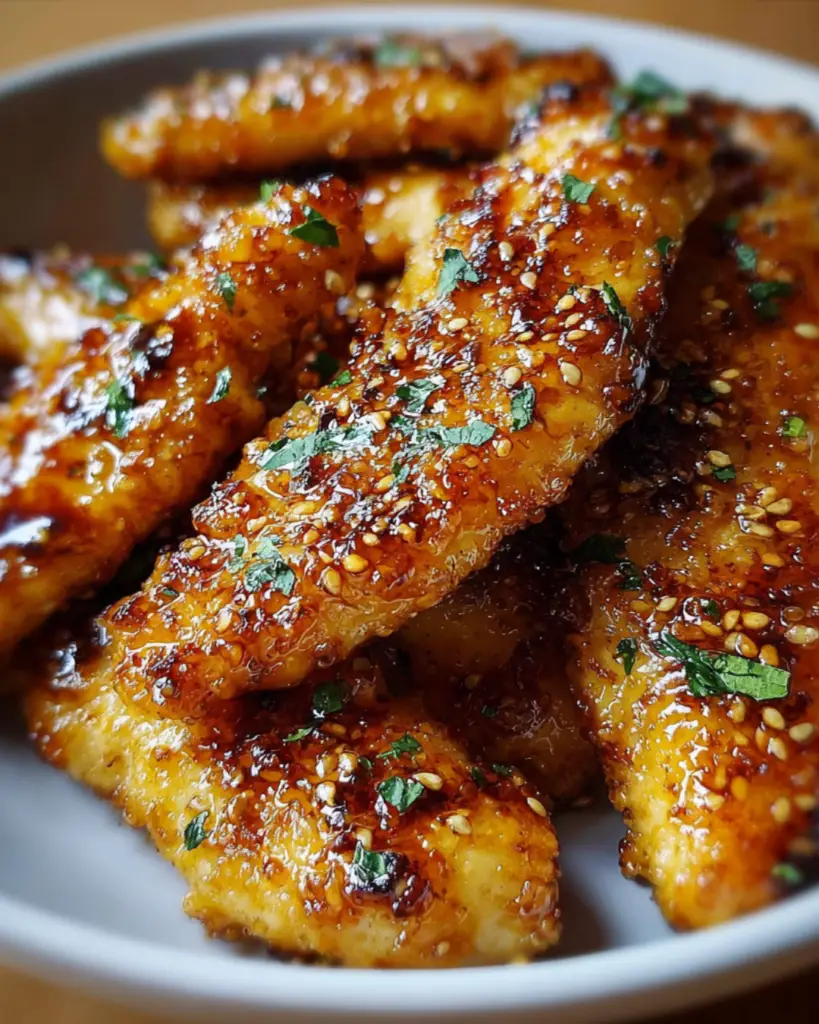 Drizzle the honey butter garlic sauce over the tenders and toss gently to coat.