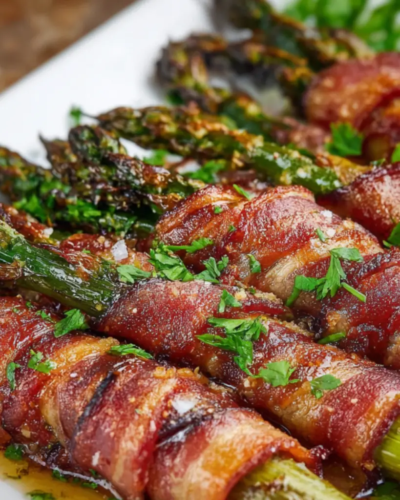 Bacon-Wrapped Asparagus is a delicious and easy-to-make appetizer that combines the savory flavor of bacon with the freshness of asparagus.