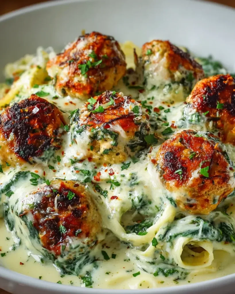 Why You’ll Love This Baked Chicken Ricotta Meatballs with Spinach Alfredo Sauce