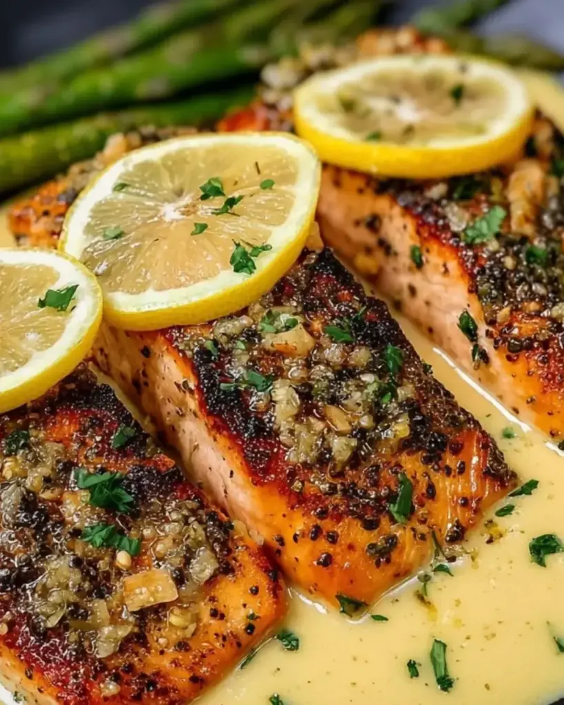 Baked Salmon with Butter Garlic Sauce is a delicious and easy-to-make dish that combines the rich flavors of salmon with a savory butter garlic sauce.