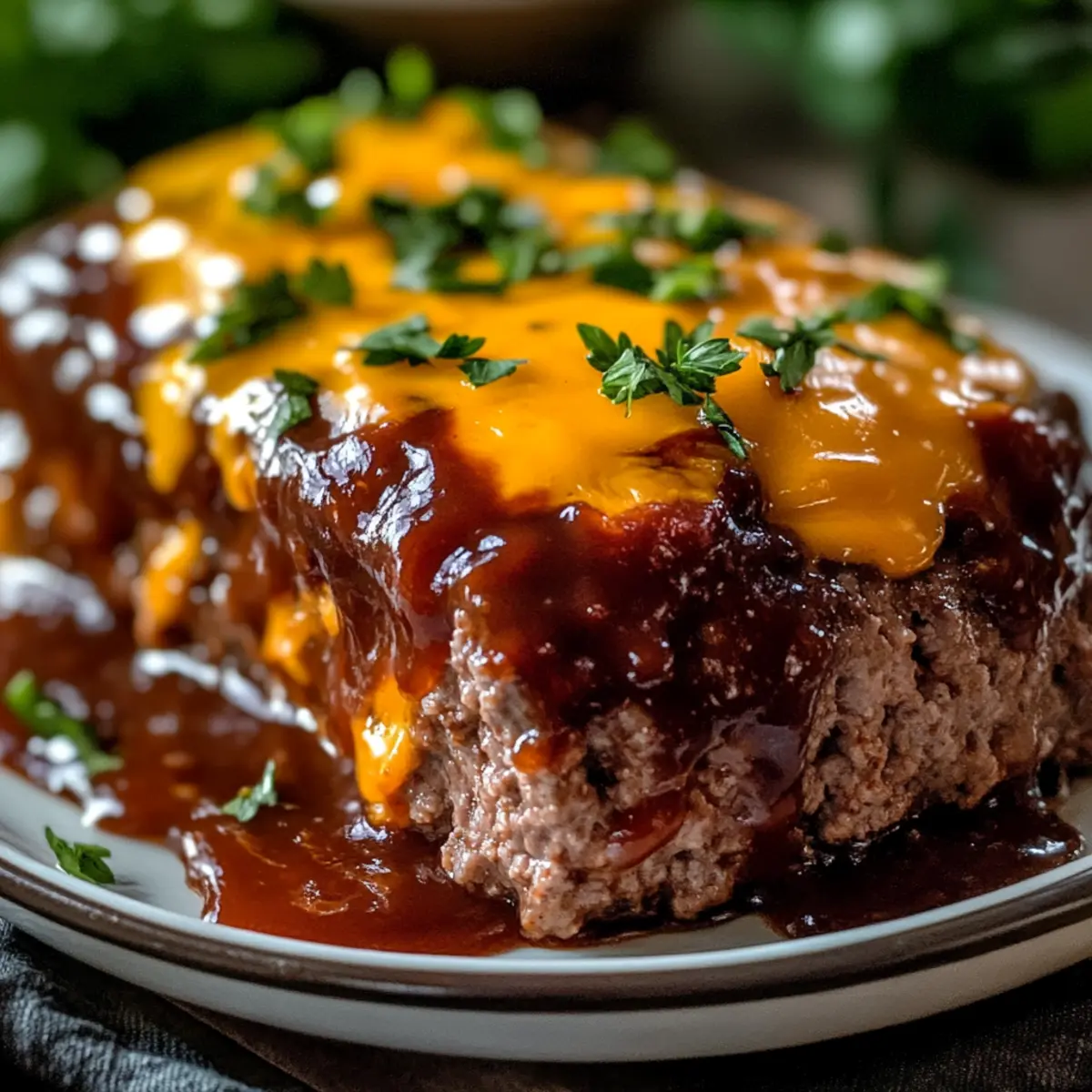 As I lifted the lid, the sweet aroma of BBQ filled my kitchen, instantly transporting me to a cozy family gathering. Today, I’m excited to share my BBQ Cheddar Meatloaf, a delightful twist on a classic comfort food that never fails to impress. This dish is not only incredibly easy to whip up on a busy weeknight, but it also serves as a heavenly solution for those pesky leftovers that beg to be reinvented. Imagine sinking your teeth into a slice that’s tender and juicy, with gooey cheddar cheese peeking through a tangy BBQ glaze—what a treat! Whether you’re feeding a hungry family or looking for a heartwarming meal, this recipe checks all the boxes. Ready to discover how to create this mouthwatering masterpiece? Let’s dive in!