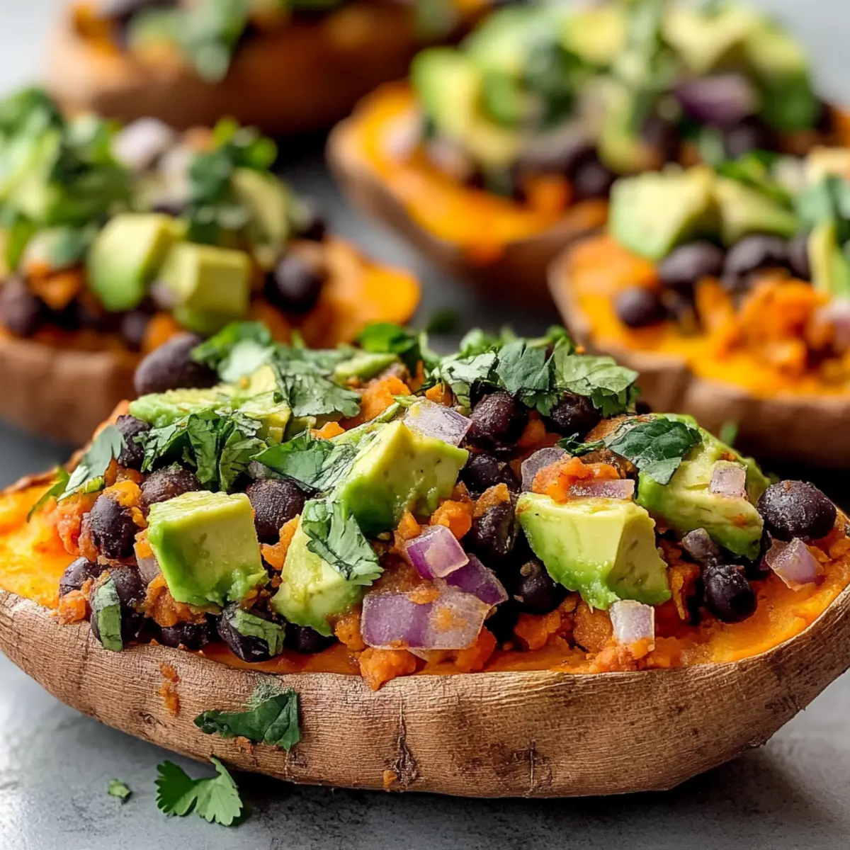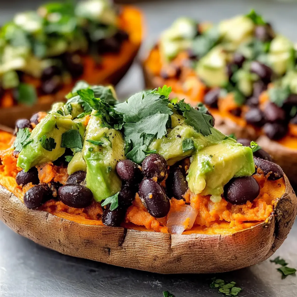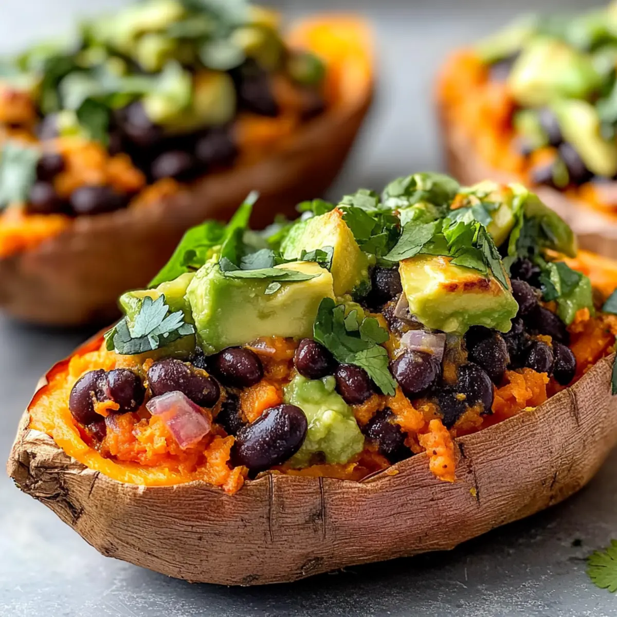 These Black Bean and Avocado Stuffed Sweet Potatoes are perfect for busy home cooks looking to save time during the week! You can bake the sweet potatoes up to 24 hours in advance; just allow them to cool completely before storing in the refrigerator. For the filling, prepare the black bean and avocado mixture a few hours before serving to keep the avocado fresh. Simply refrigerate it in an airtight container. When you’re ready to eat, fill the sweet potatoes with the mixture and if desired, sprinkle cheese on top before reheating in the oven for about 5-10 minutes to ensure everything is warmed through. This way, you’ll enjoy a delicious meal with minimal effort!