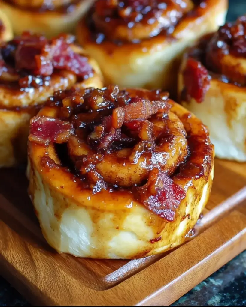 Bourbon Maple Bacon Cinnamon Rolls are a delightful combination of sweet and savory flavors, featuring a rich bourbon glaze and crispy bacon.