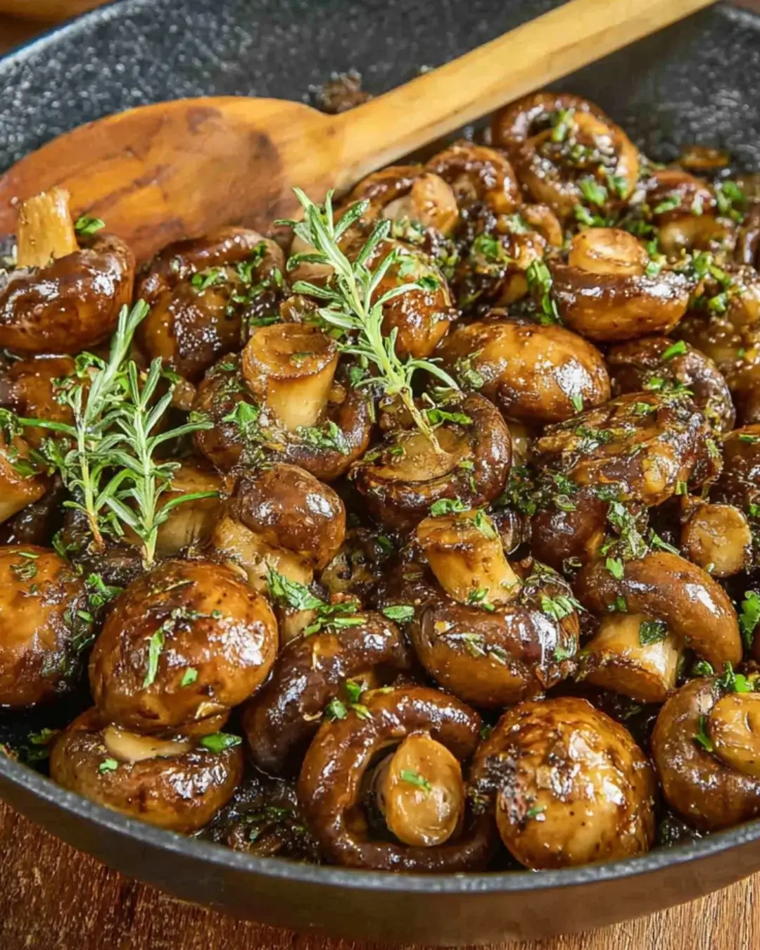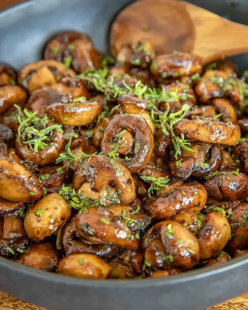 Once the mushrooms are beautifully browned, stir in the minced garlic and fresh thyme. Cook for an additional 1-2 minutes until the garlic becomes fragrant. Be careful not to burn the garlic; it can turn bitter quickly. This is where the aroma in your kitchen will start to make mouths water!