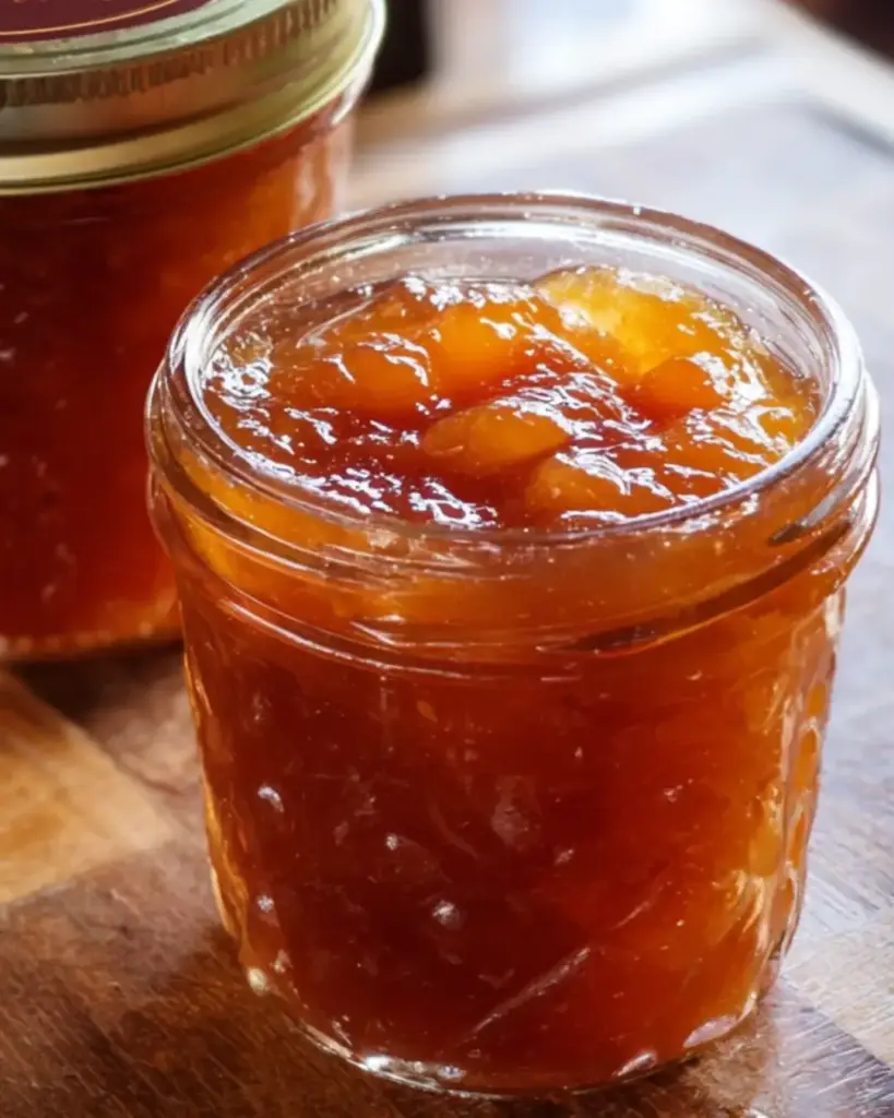 A delightful and sweet Bourbon Peach Jam recipe that combines fresh peaches with bourbon for a unique flavor.