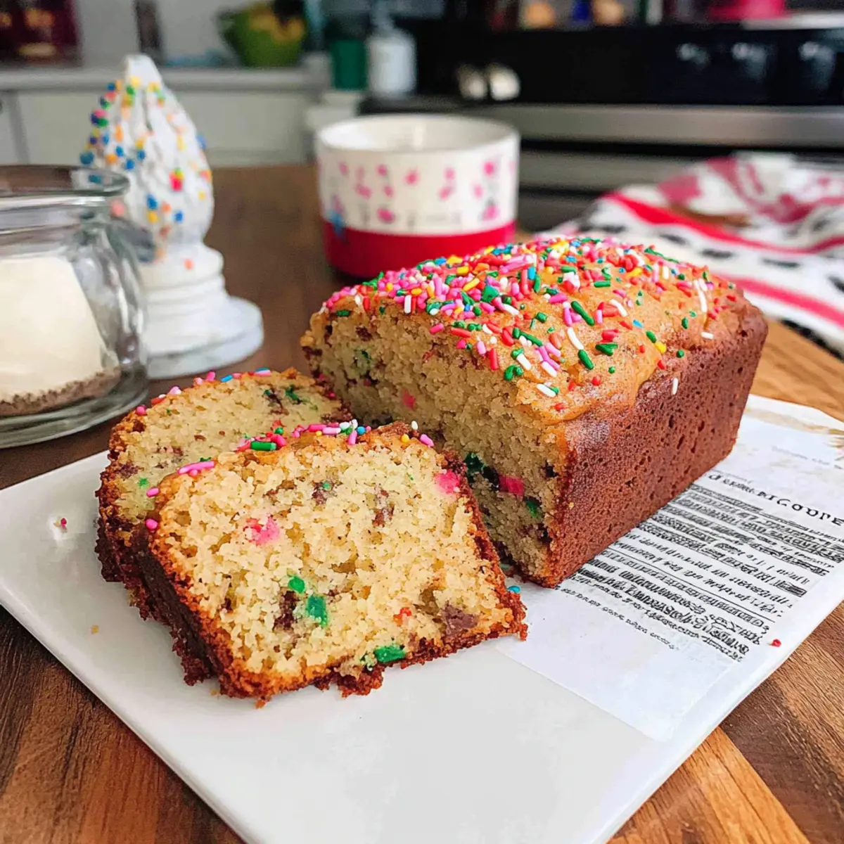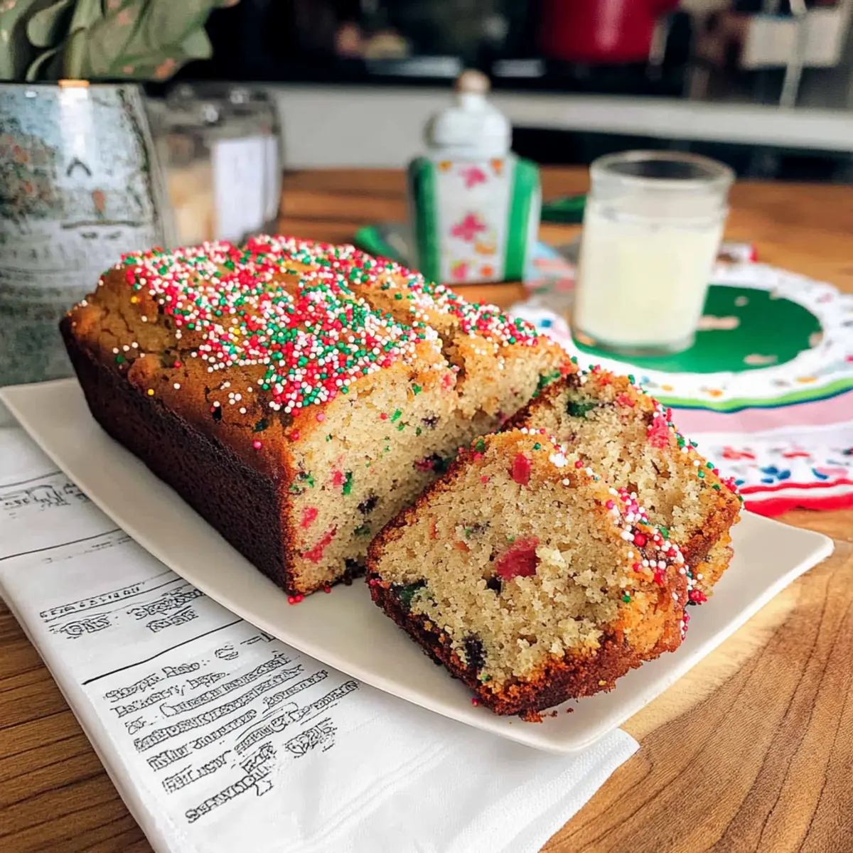 - Festive Sprinkles – These add a fun touch to your banana bread; use any variety that suits your celebration or skip them for a simpler look.