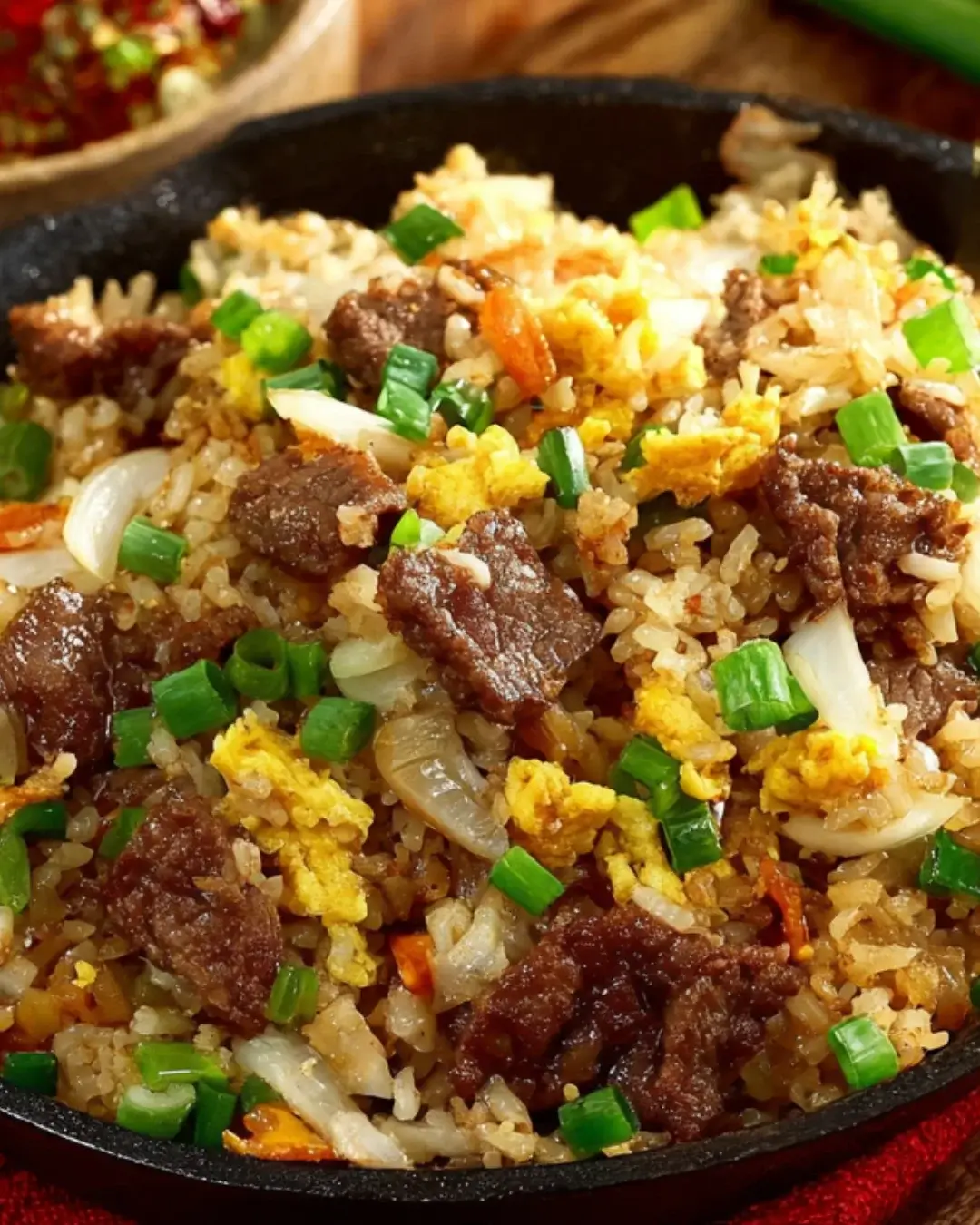 Onion Beef Fried Rice is your quick weeknight dinner!