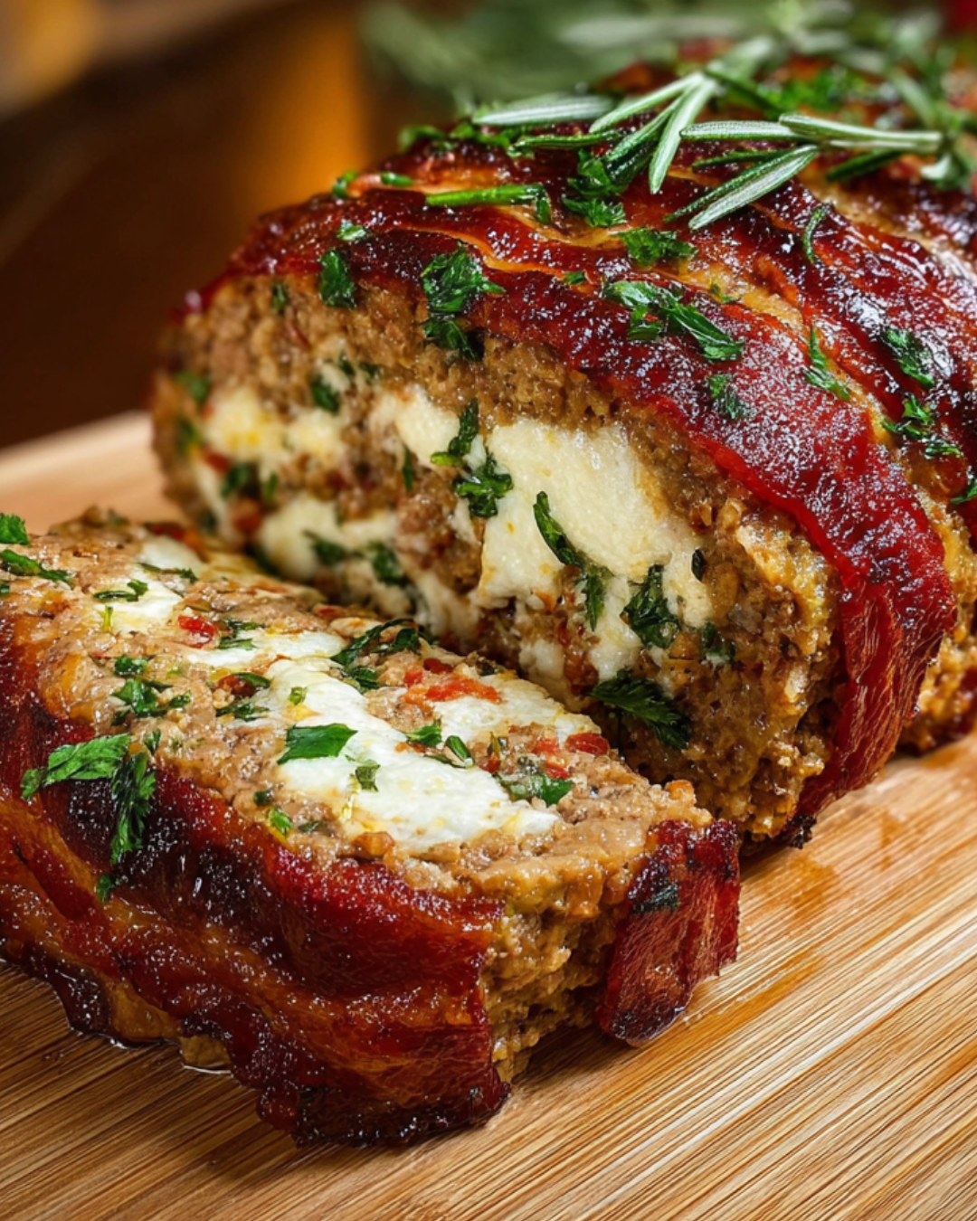 Mozzarella-Stuffed Bacon Meatloaf: A Flavorful Delight!