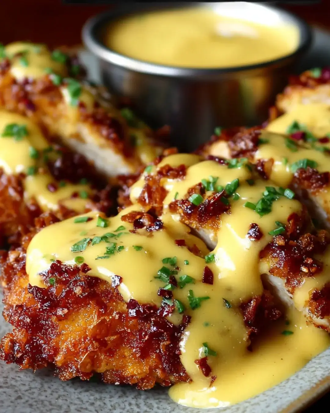 Crispy Pretzel Chicken with Mustard-Cheddar Sauce Recipe Delights!