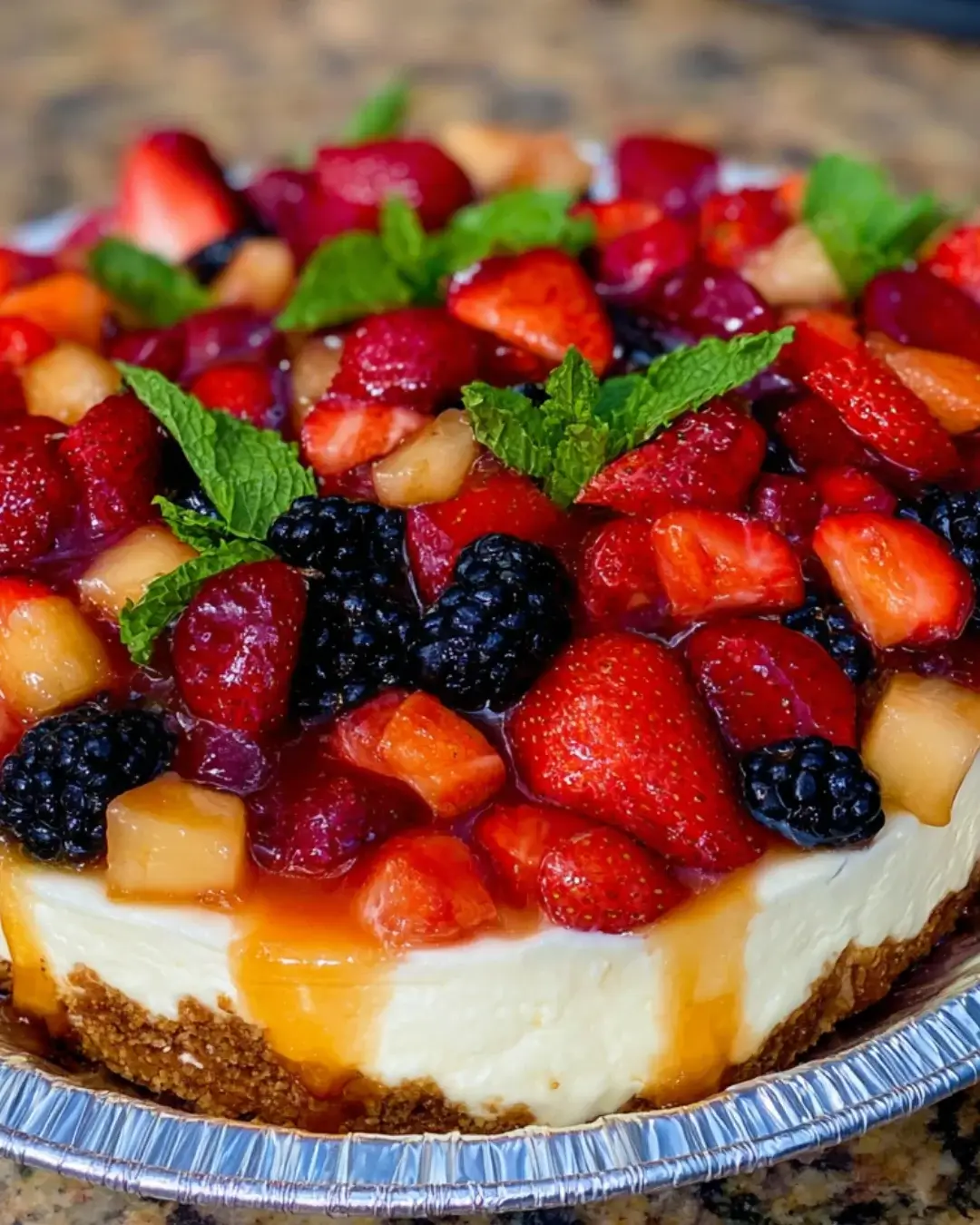 A refreshing and creamy cheesecake fruit salad perfect for summer gatherings.