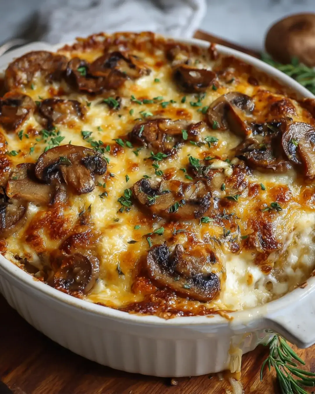 While fresh mushrooms are best for flavor and texture, you can use frozen mushrooms in a pinch. Just make sure to thaw and drain them well to avoid excess moisture in your bake.