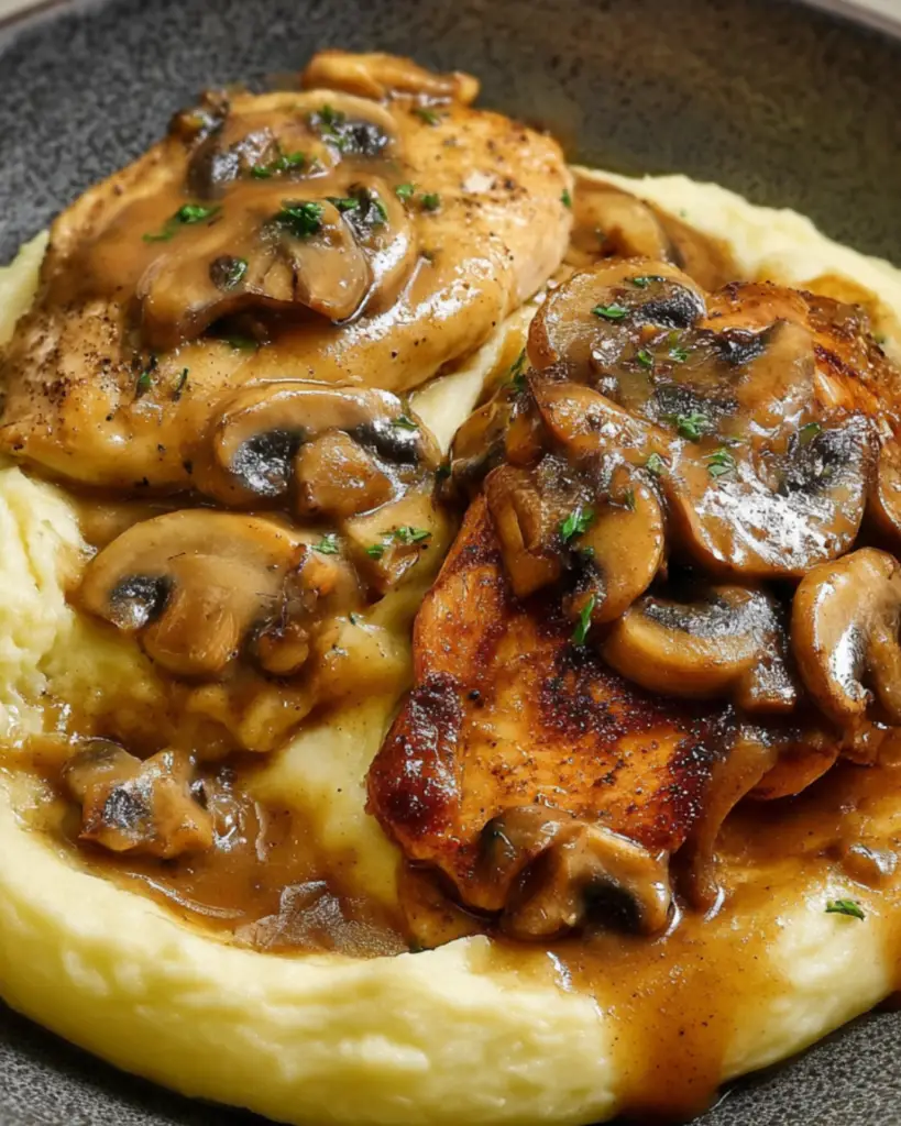 - Serve the chicken and mushroom mixture over a generous scoop of mashed potatoes.