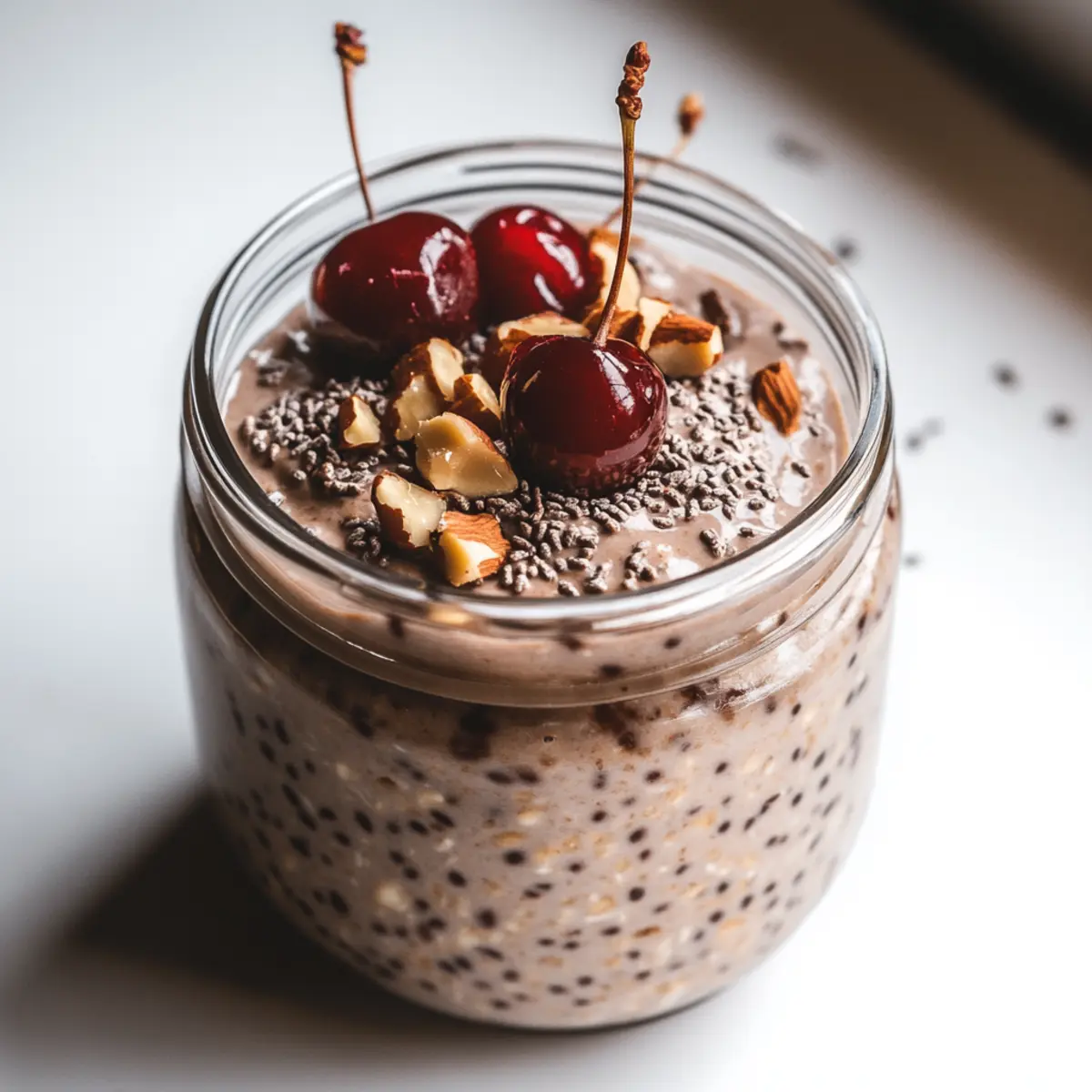These Chocolate & Cherry Overnight Oats are a fantastic choice for meal prep enthusiasts! You can prepare the base mixture (oats, almond milk, cocoa powder, maple syrup, and a pinch of salt) up to 3 days in advance. Simply combine these ingredients in jars and refrigerate them overnight (or at least for 4 hours) to allow the flavors to develop. For the best quality, gently fold in the cherries just before serving to keep them fresh and bursting with flavor. When ready to enjoy, grab a jar from the fridge, top with additional cherries or nut butter if desired, and relish a delicious, nutritious breakfast with minimal effort!