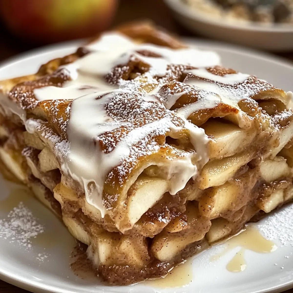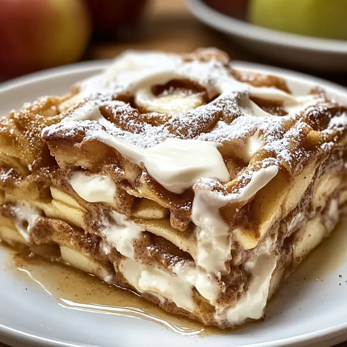 Allow the lasagna to cool slightly for easier slicing. You can serve it warm or chilled; both options are delightful! To create a beautiful presentation, consider serving each slice with a scoop of vanilla ice cream or a dollop of whipped cream to elevate your exquisite Cinnamon Roll Apple Lasagna experience.