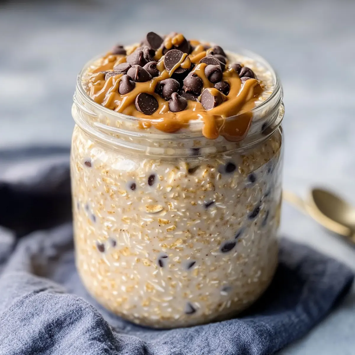 These Cookie Dough Overnight Oats are a perfect solution for busy mornings! You can prepare the oat mixture (excluding the peanut butter and topping) up to 3 days in advance. Simply combine rolled oats, milk, Greek yogurt, maple syrup, vanilla extract, and a pinch of salt in your jar or bowl. Store it in the refrigerator covered to maintain freshness. When you’re ready to enjoy, just layer the prepared oats with peanut butter and sprinkle with mini chocolate chips. This way, you get all the delicious flavors without the morning rush, making breakfast feel indulgent even on the busiest days!