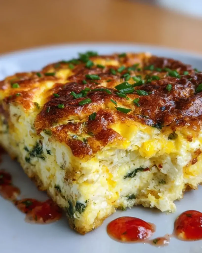 Once it’s done, remove the dish from the oven. Let it cool for about 5 minutes. This makes slicing easier. Then, cut it into squares and serve warm. Enjoy the delightful flavors of your Cottage Cheese Egg Bake!