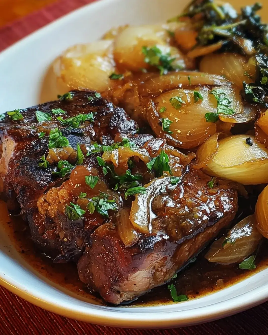 Indulge in Cozy Garlic Onion Braised Pork, a flavorful dish that combines tender pork shoulder with aromatic garlic and onions, braised to perfection.