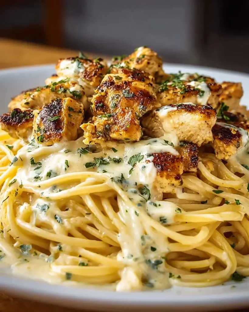 Absolutely! You can prepare the creamy sauce and cook the chicken in advance. Just store them separately in the fridge. When you’re ready to eat, simply reheat and combine with freshly cooked spaghetti.
