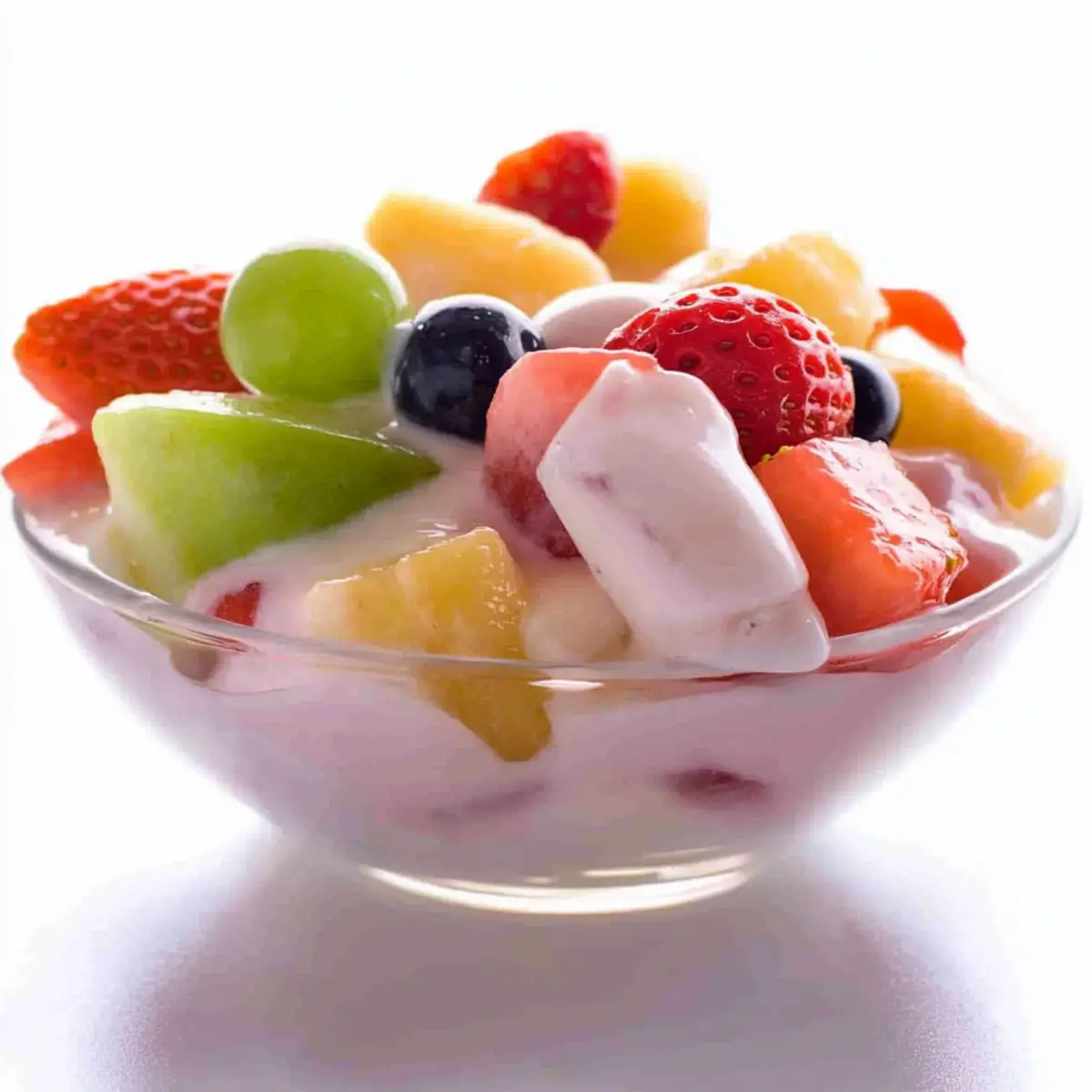 It’s best to avoid freezing the creamy fruit salad with yogurt, as the texture of the yogurt can change once frozen and thawed. However, if you prefer to freeze it, I recommend freezing just the fruit without the yogurt in a single layer on a baking sheet for 1-2 hours. Once frozen, transfer it into a sealed freezer bag for up to 1 month. When ready to use, simply thaw the fruit and mix with yogurt right before serving!
