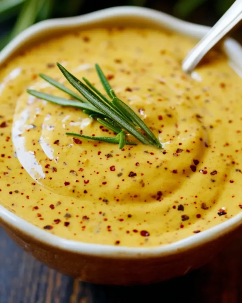 A creamy and tangy mustard sauce that enhances the flavor of various dishes.