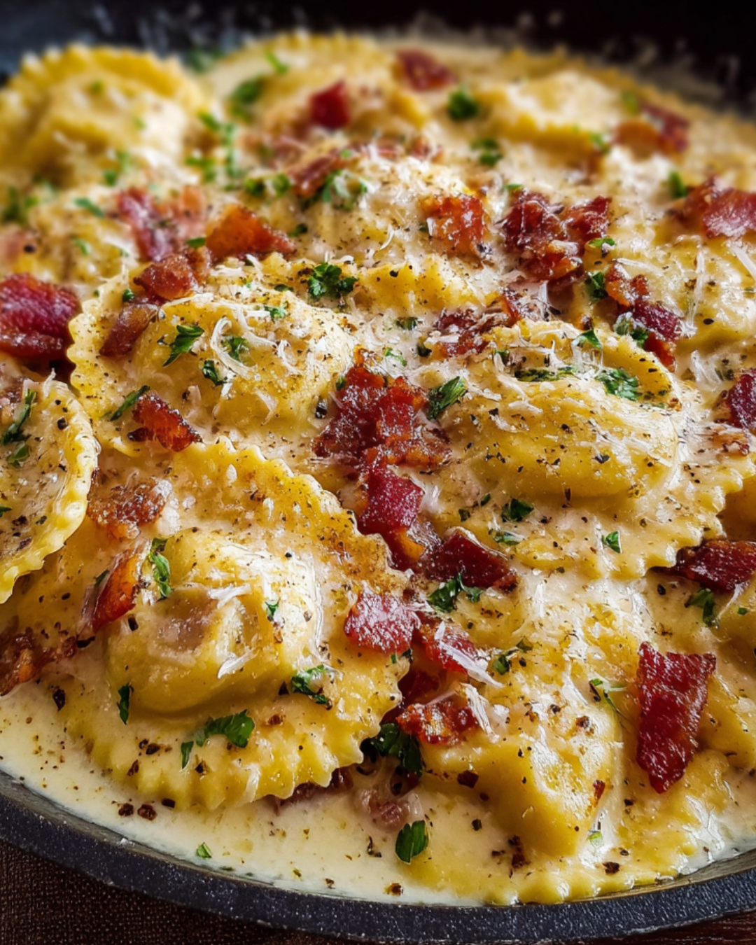 Finally, it’s time to serve! Garnish your Creamy Olive Garden Ravioli Carbonara Skillet with freshly chopped parsley. This adds a lovely touch of freshness. Serve it hot, and watch your family dig in with delight!