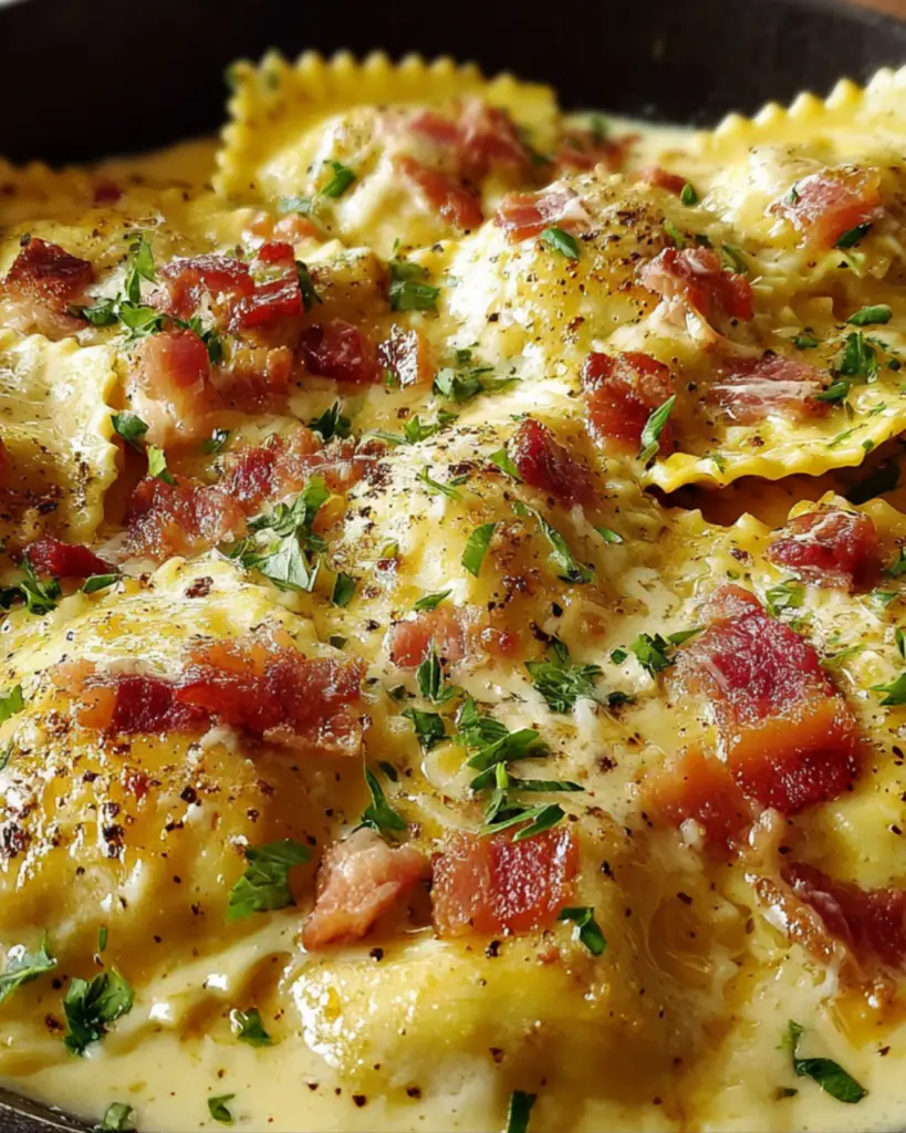 How to Make Creamy Olive Garden Ravioli Carbonara Skillet