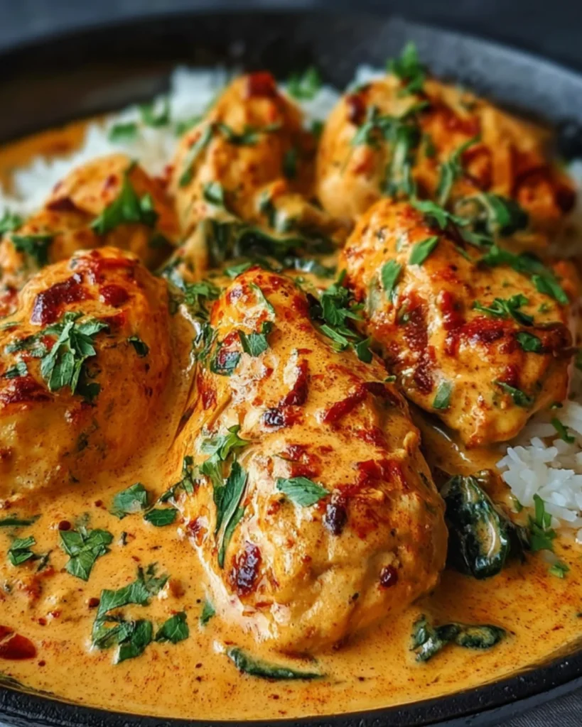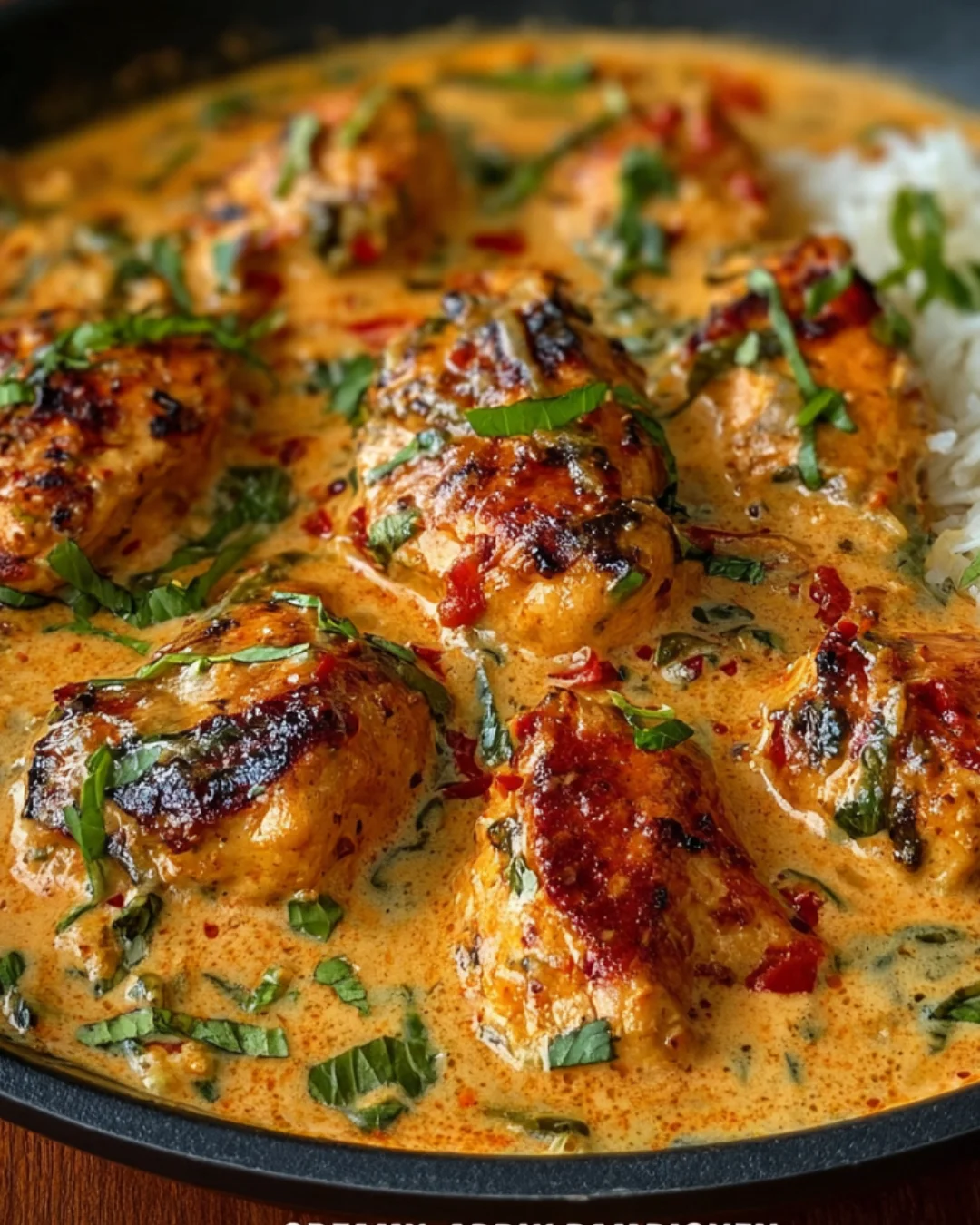 - Return the chicken to the skillet, coating it in the creamy sauce. Simmer for an additional 5 minutes to heat through.