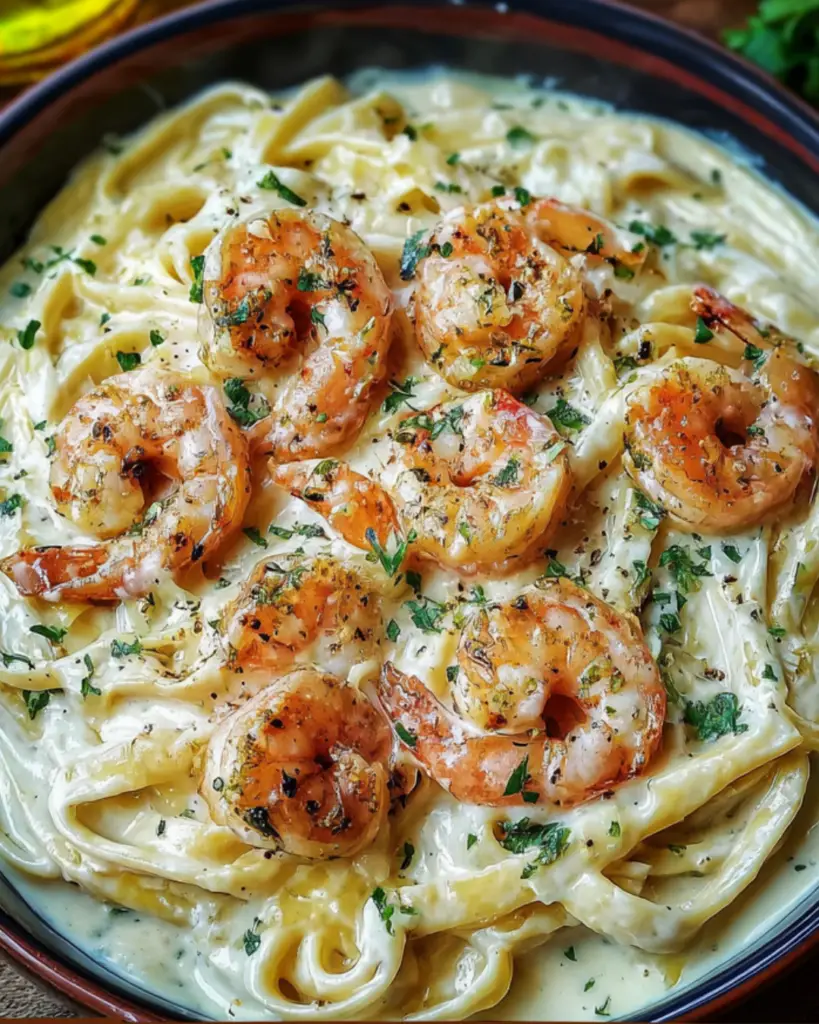 A creamy and delicious shrimp Alfredo pasta dish that is easy to prepare and perfect for any occasion.