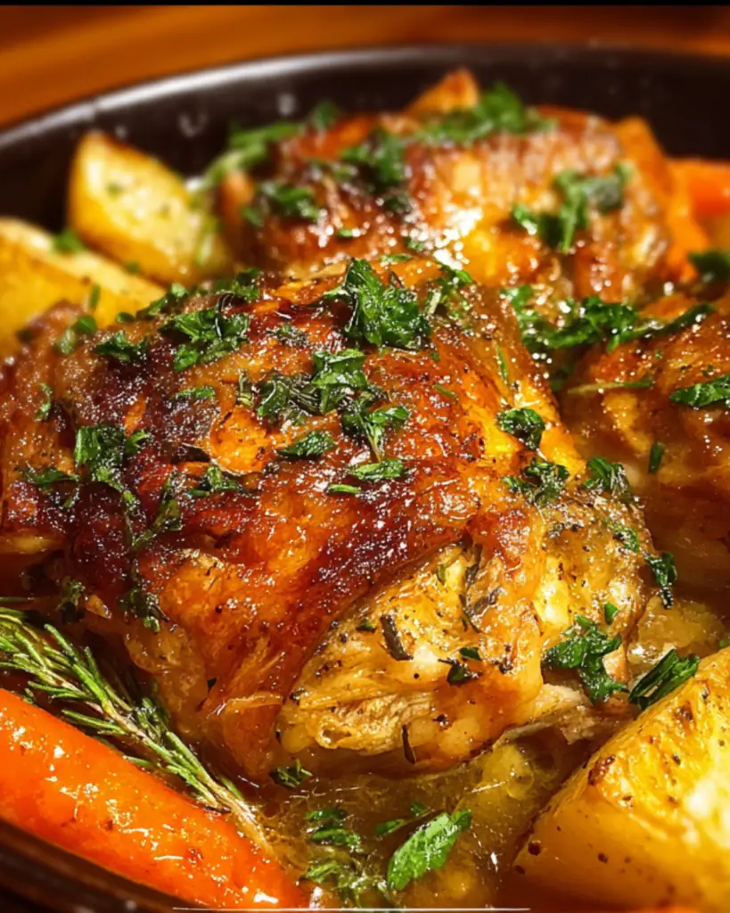 - Once done, carefully remove the chicken and vegetables from the crockpot. Serve hot, garnished with fresh parsley.