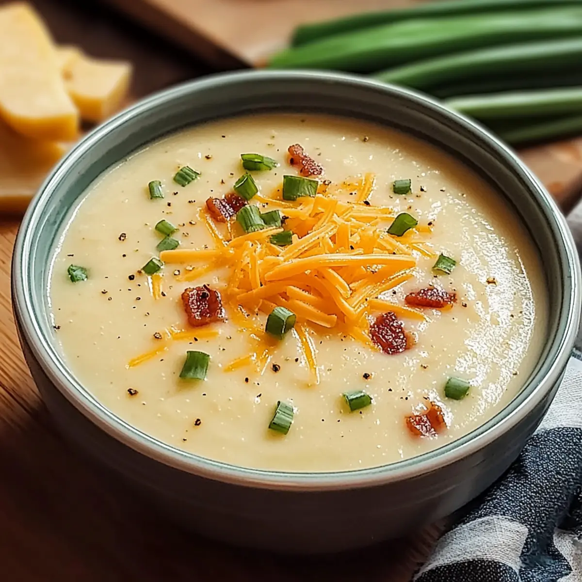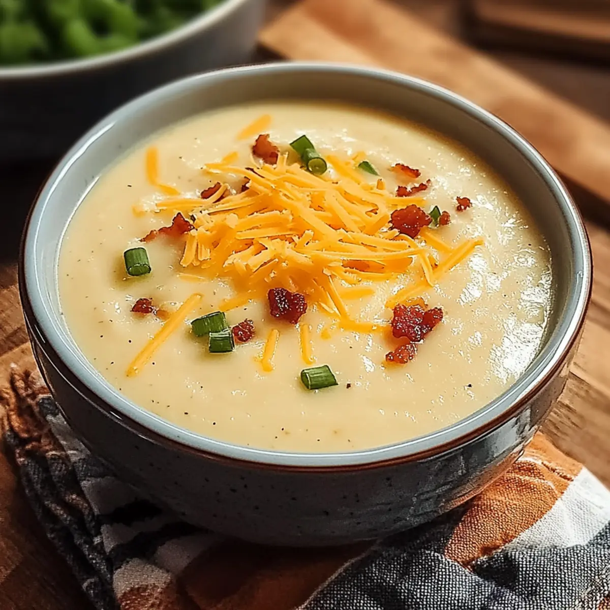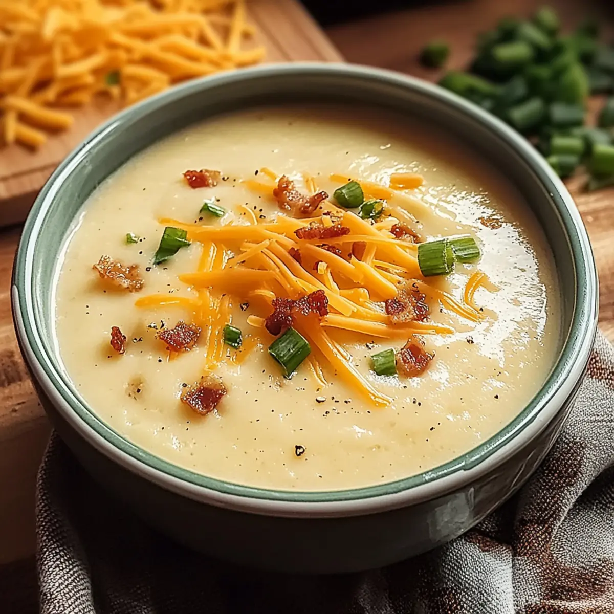 - Ladle the warm soup into bowls, garnishing with extra cheese, chopped green onions, and crispy bacon if desired.
