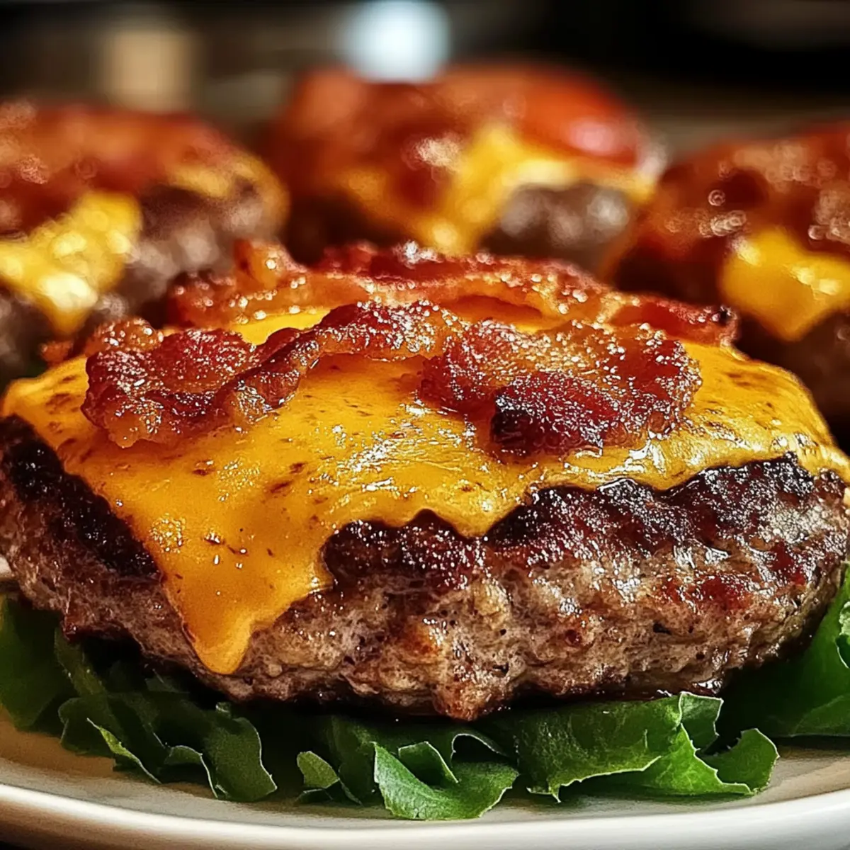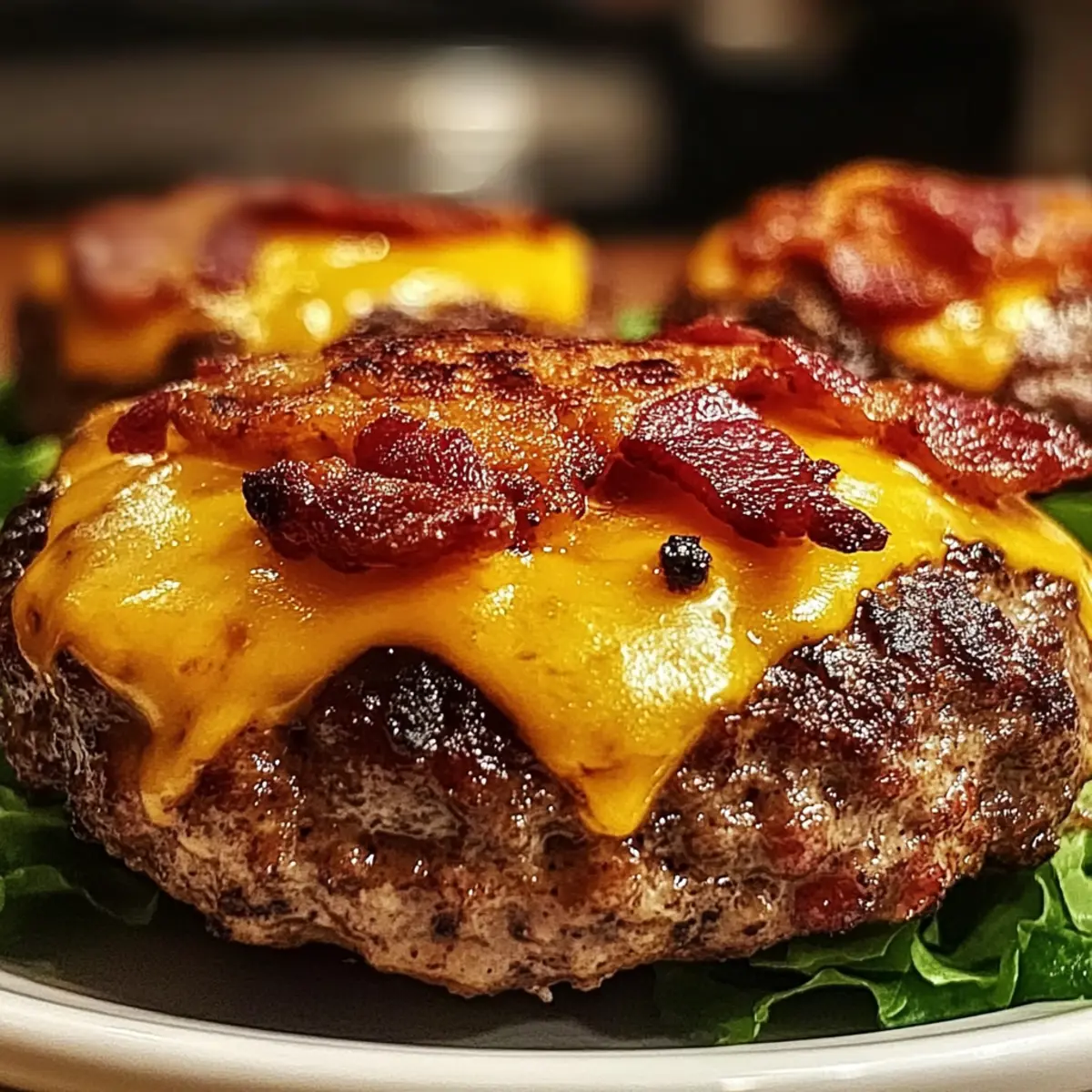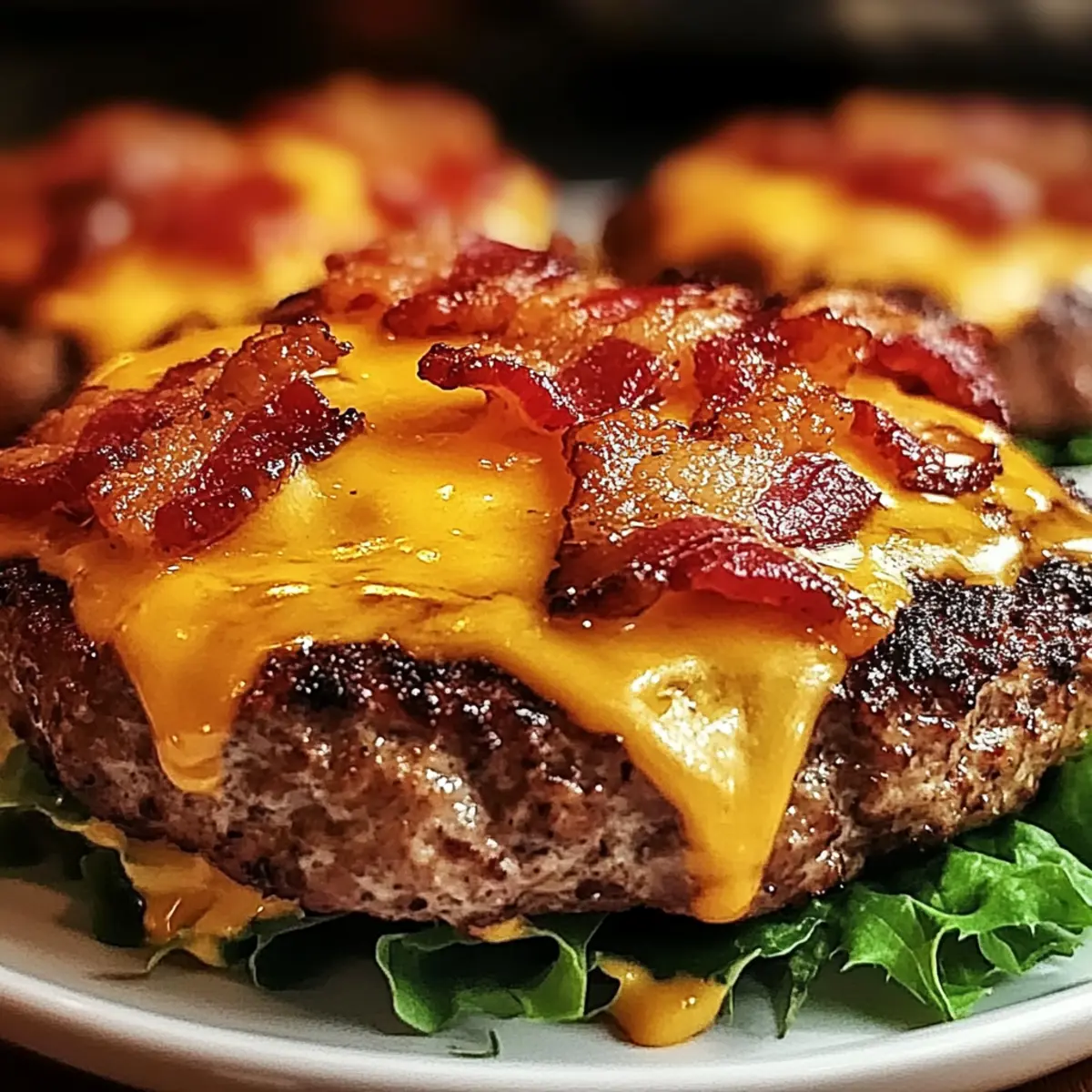 In the last 2 minutes of grilling, place a slice of cheddar cheese on each patty and generously sprinkle the chopped bacon on top. Close the grill lid to create a melting environment, allowing the cheese to become gooey and delicious while perfectly complementing the savory flavors of the Crunchy Burger Patties.