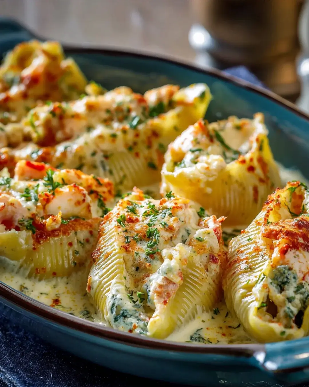 These Decadent Easy Creamy Seafood Stuffed Shells are delicious on their own, but they pair wonderfully with garlic bread, a fresh salad, or even a light soup for a complete meal experience.