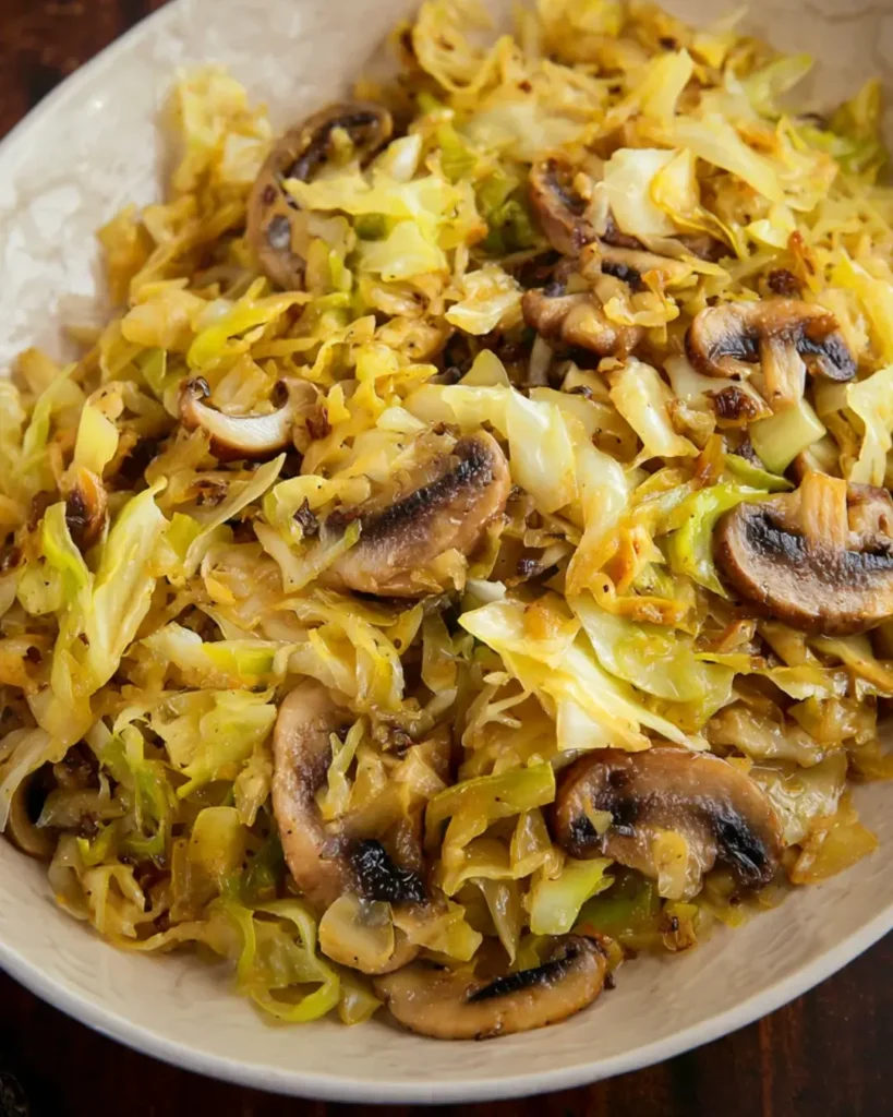 Your Easy Fried Cabbage with Mushrooms is ready to shine on the dinner table!
