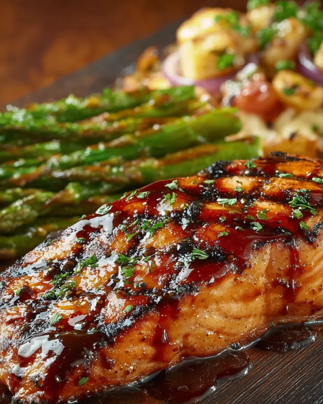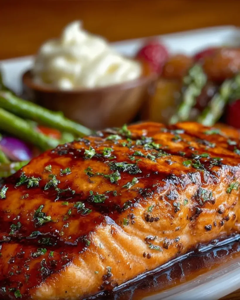 This salmon is versatile! It pairs beautifully with grilled vegetables, a fresh salad, or even some fluffy rice to soak up that delicious glaze.