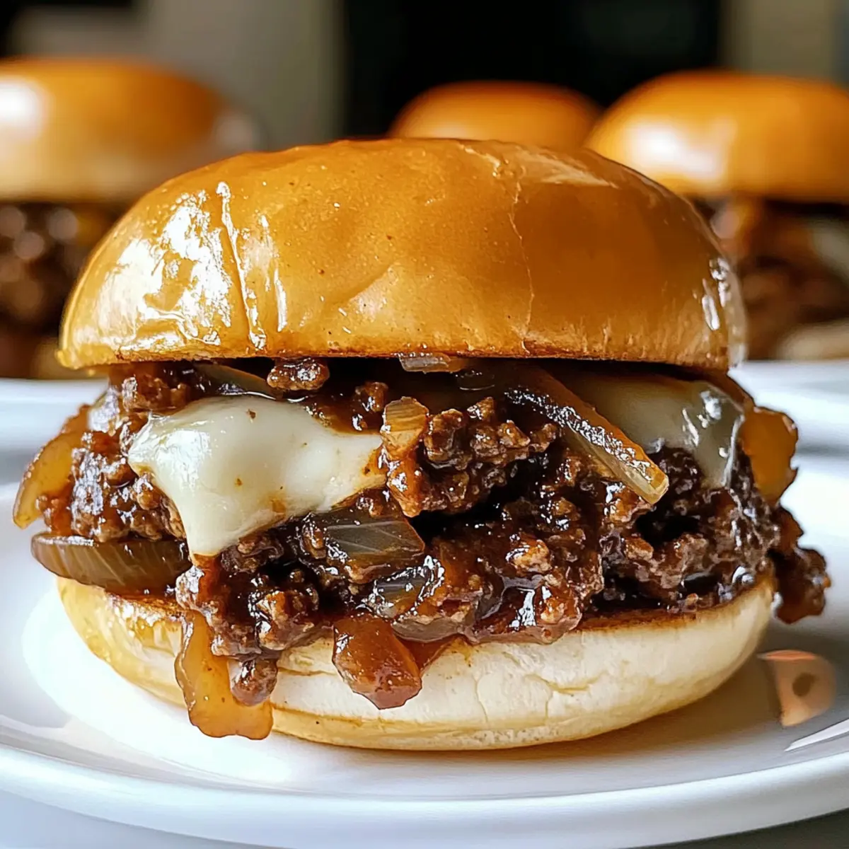 These Irresistible French Onion Beef Sloppy Joes are perfect for meal prep enthusiasts! You can prepare the beef and onion mixture up to 3 days in advance, storing it in an airtight container in the refrigerator. To maintain quality, ensure that the mixture is cool before sealing, and reheat it gently on the stove to avoid drying it out. You can also caramelize the onions a day before and refrigerate them separately to deepen their flavor. When you’re ready to serve, simply reheat the prepared ingredients and melt the cheese on top as specified in the recipe. This way, you’ll enjoy the same deliciousness with minimal effort on busy weeknights!
