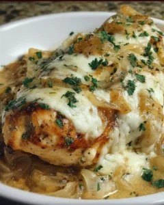 French Onion Chicken is more than just a meal; it’s an experience that brings warmth and joy to the table. The combination of tender chicken, sweet caramelized onions, and gooey cheese creates a symphony of flavors that delights the senses. Whether you’re cooking for family or friends, this dish is sure to impress and spark conversation. Plus, the ease of preparation means you can focus on what truly matters—enjoying the moment together. So, roll up your sleeves, embrace the aromas, and let this comforting recipe become a cherished part of your culinary repertoire!