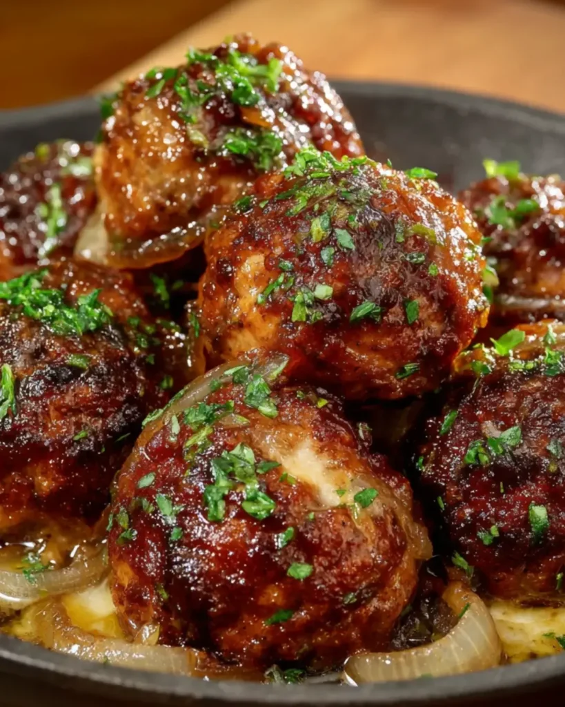 To serve, spoon the meatballs onto plates, drizzling the onion and broth mixture over the top. For an attractive presentation, garnish with a sprinkle of fresh parsley. These French Onion Meatballs are not just a meal; they’re a comforting experience that will have everyone coming back for seconds!