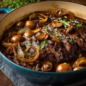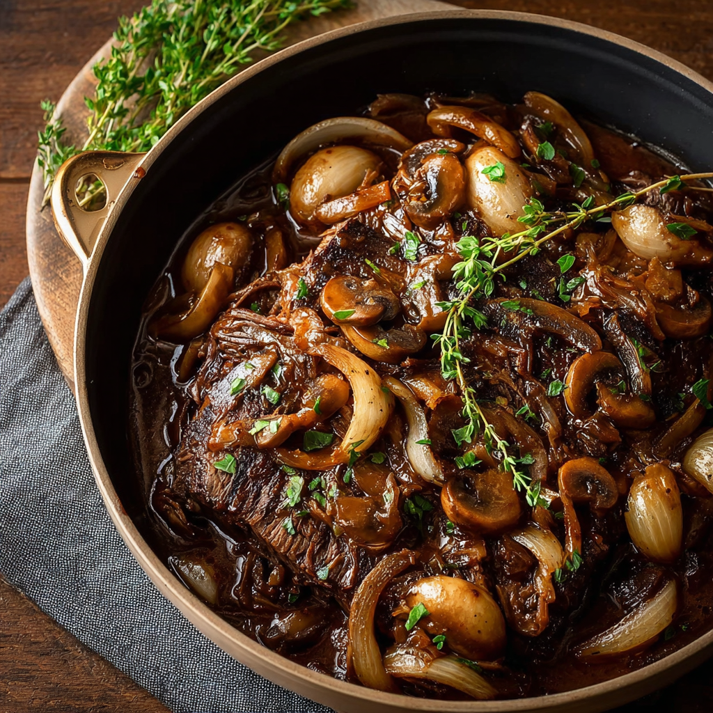 A flavorful and hearty French Onion Mushroom Pot Roast that combines tender beef with savory onions and mushrooms.