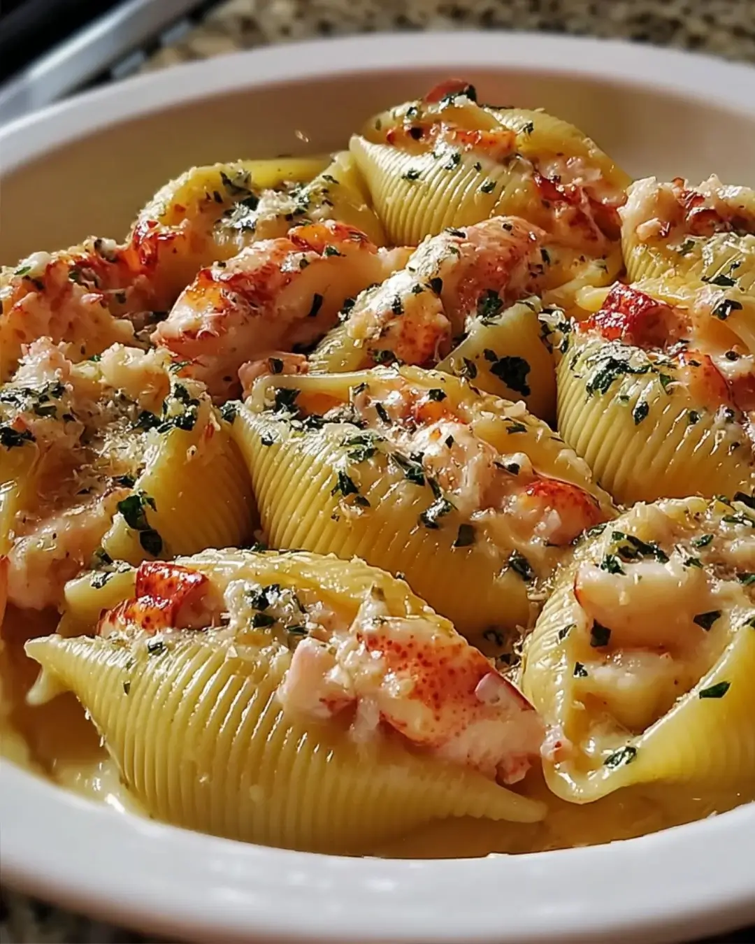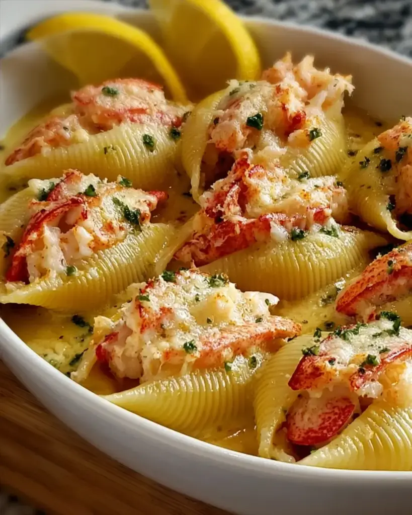 PrintGarlic Butter Lobster-Filled Jumbo Pasta Shells Delight!