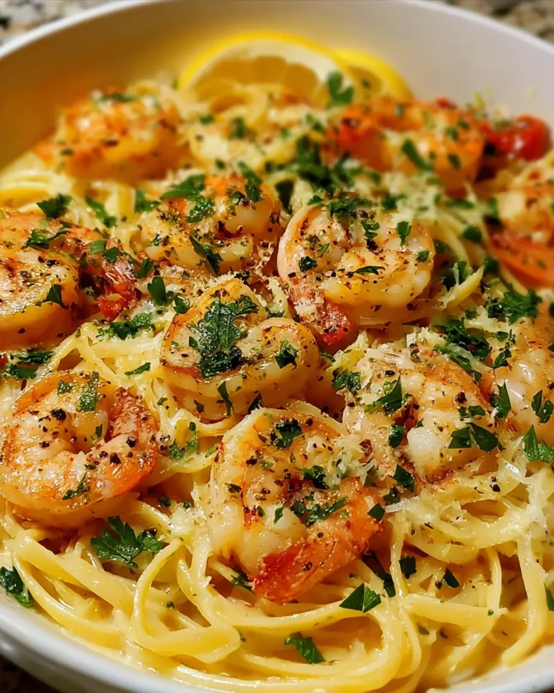 Garlic Butter Shrimp Pasta is a quick and delicious dish that combines succulent shrimp with a rich garlic butter sauce, served over pasta.