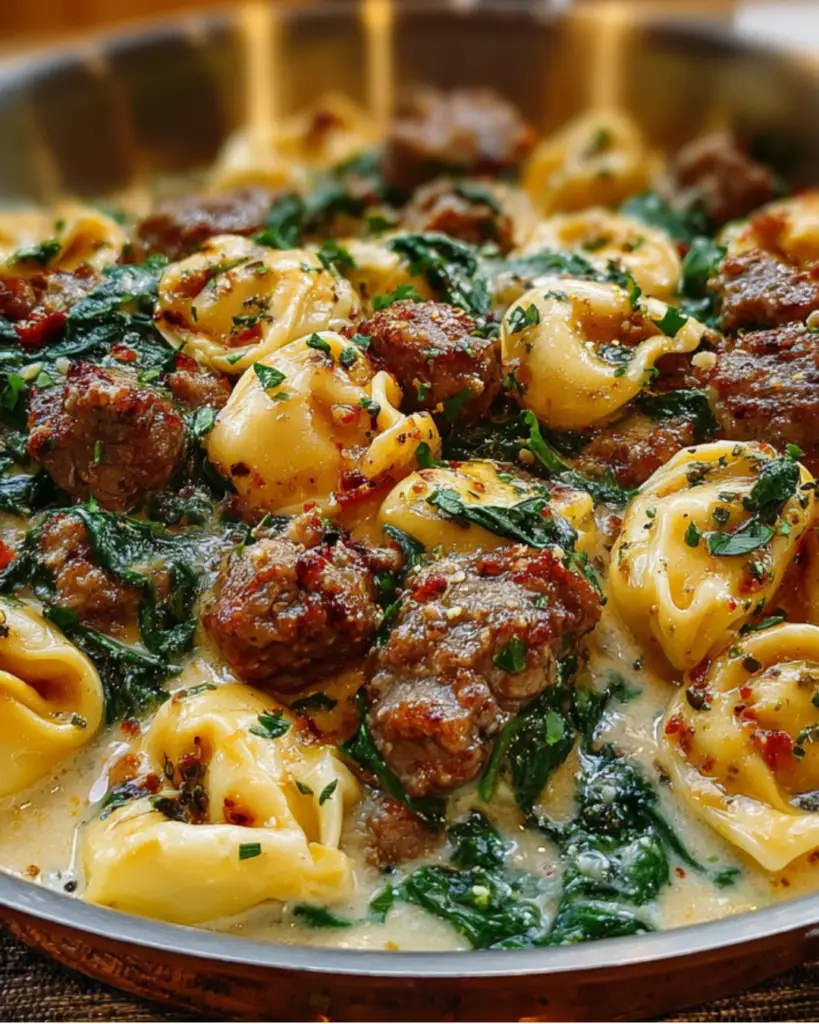 Introduction to Garlic Butter Tortellini in Creamy Sauce with Beef, Italian Sausage & Spinach