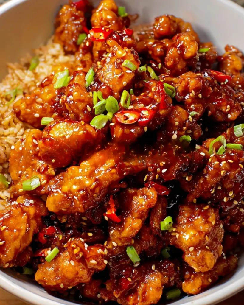 Now comes the best part—serving! Transfer your General Tso’s Chicken to a serving platter. Garnish with sliced green onions and a sprinkle of sesame seeds for that extra flair. Serve it hot, and watch as everyone digs in. Pair it with steamed rice or your favorite side, and enjoy the compliments!