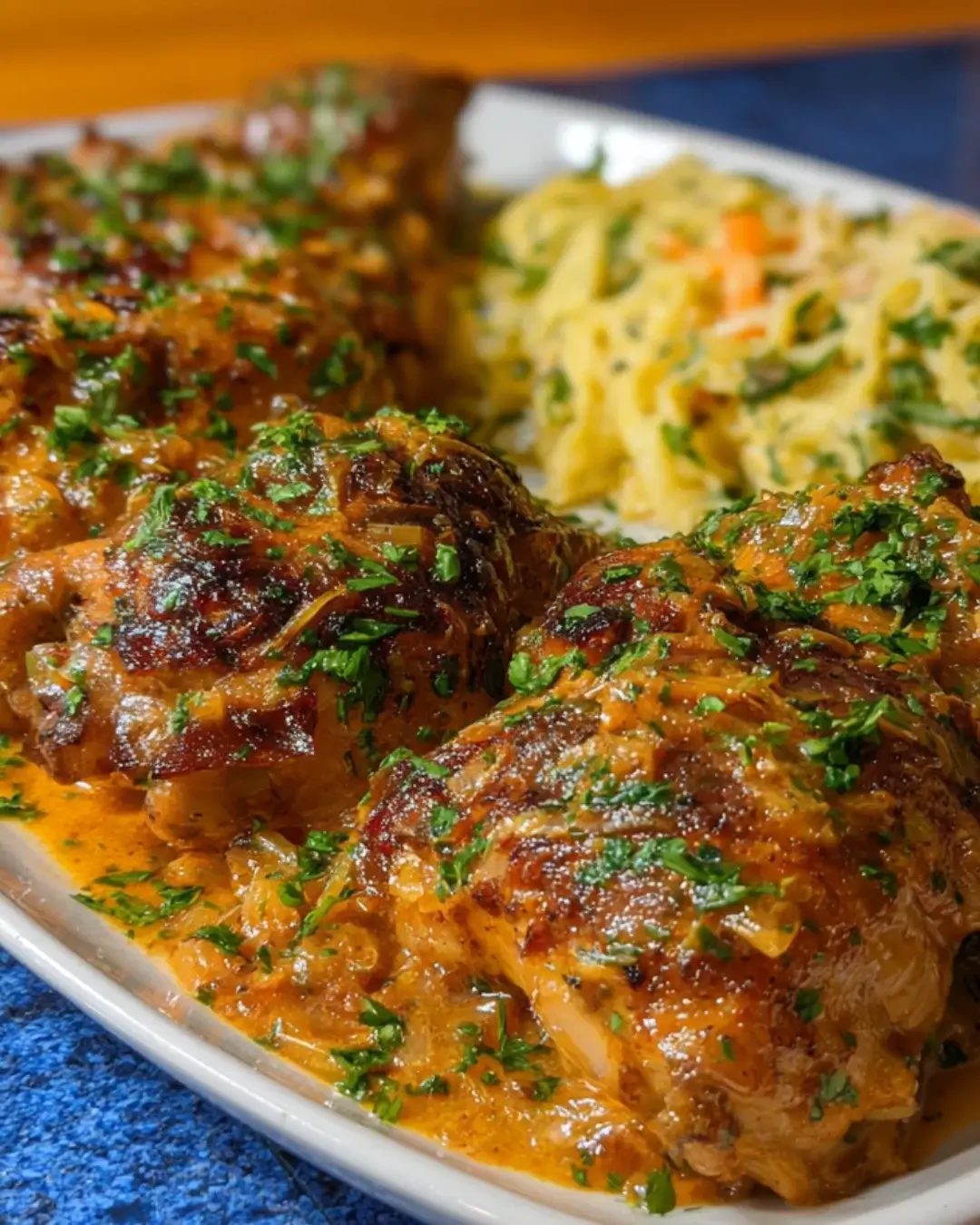 – **Bone-in, skin-on chicken thighs**: These are the stars of the dish, providing juicy meat and crispy skin. The bones add flavor during cooking.