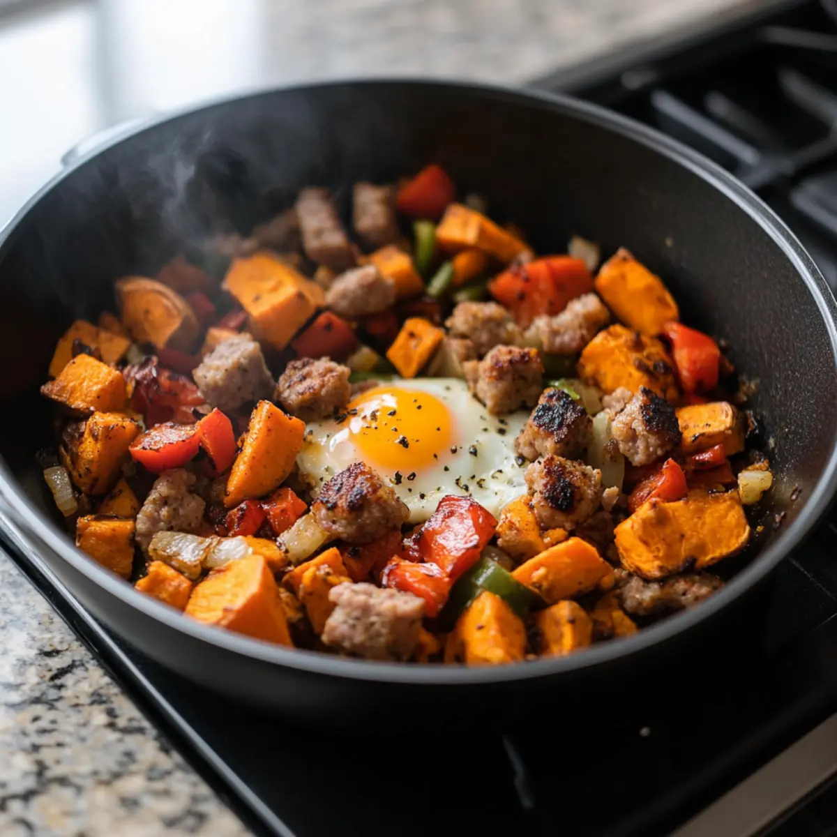 For sure! This recipe is naturally gluten-free; however, if you’re accommodating allergies, check that all ingredients, especially the turkey sausage, are verified gluten-free. You can also opt for vegetarian or plant-based sausage options. If you’re sensitive to eggs, you might consider using egg substitutes or just adding more veggies to enhance the nutrition while keeping the meal satisfying.