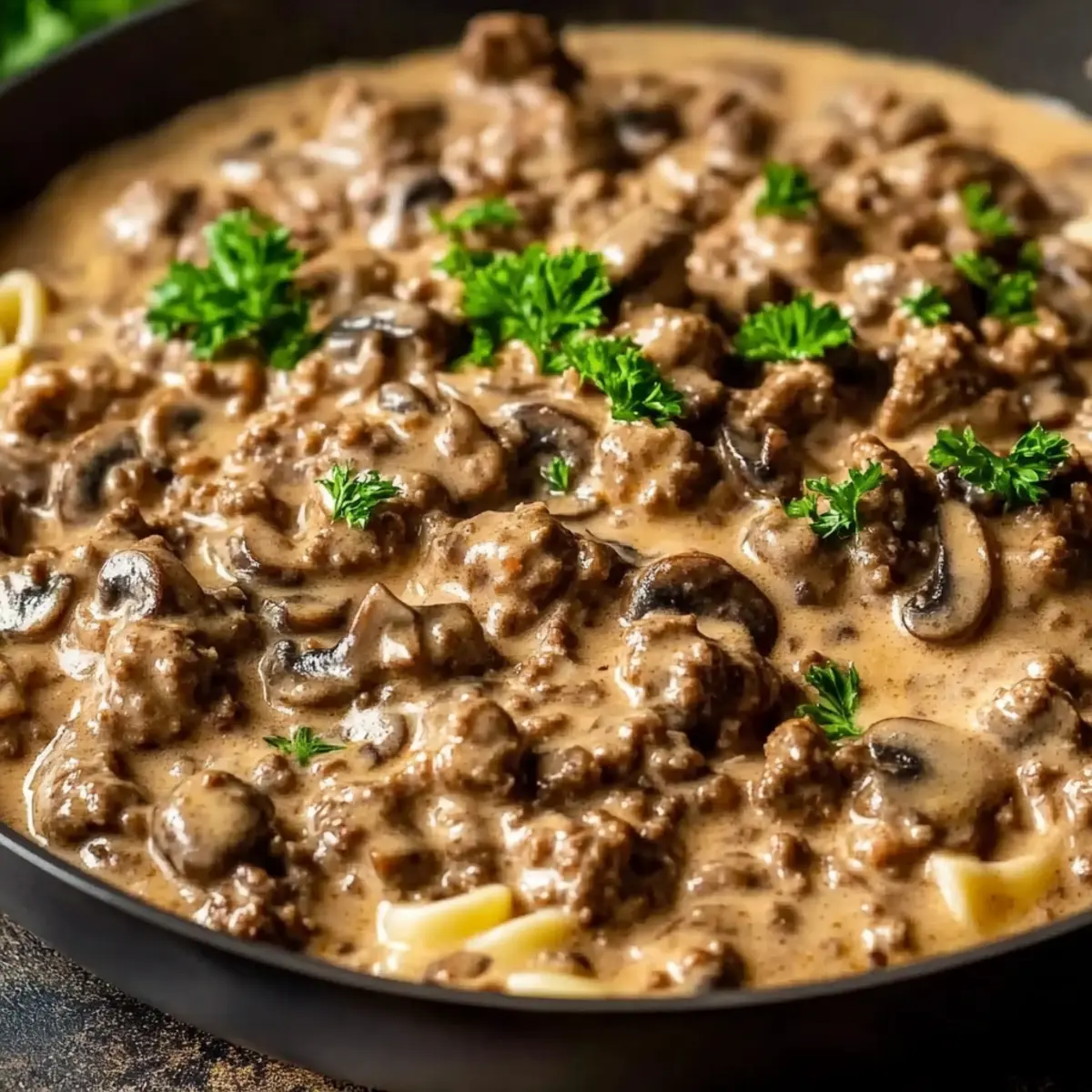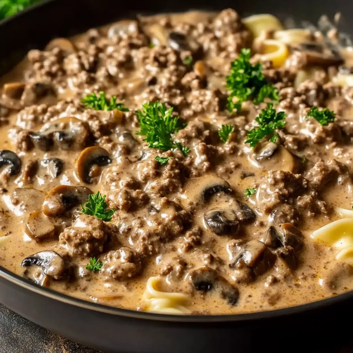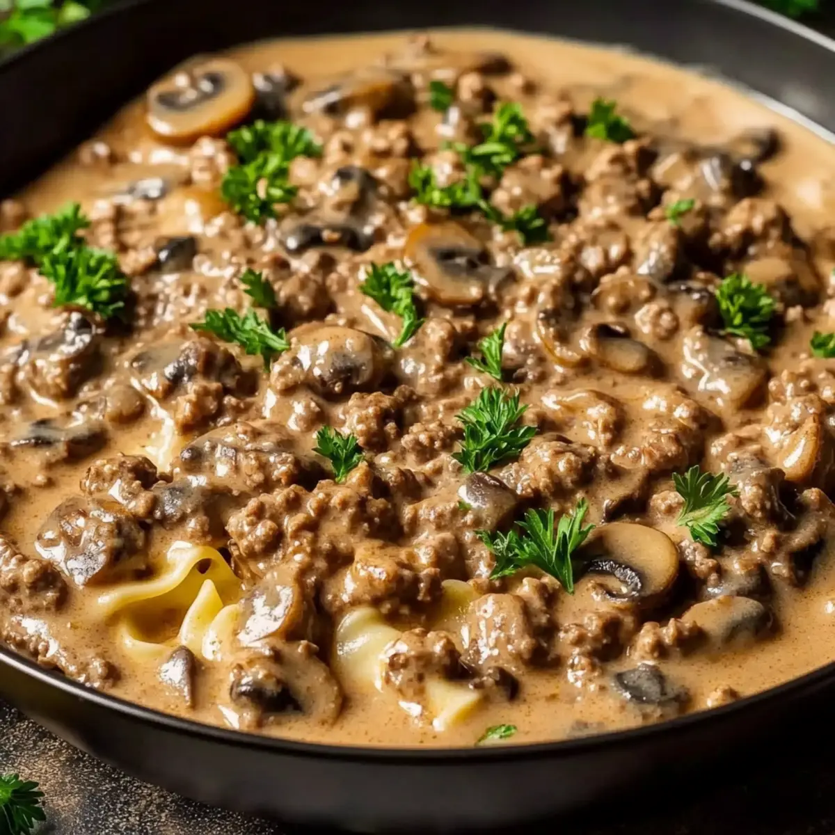 - Serve the Hamburger Beef Stroganoff in bowls, garnished with parsley.