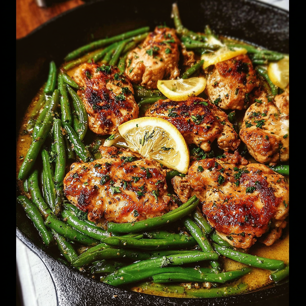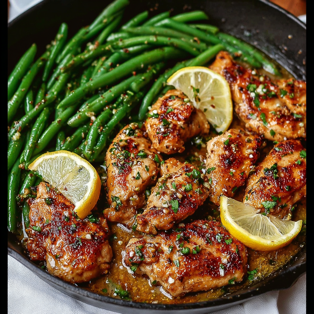 A delicious and easy-to-make Lemon Garlic Butter Chicken and Green Beans Skillet that combines tender chicken breasts with fresh green beans in a flavorful garlic butter sauce.