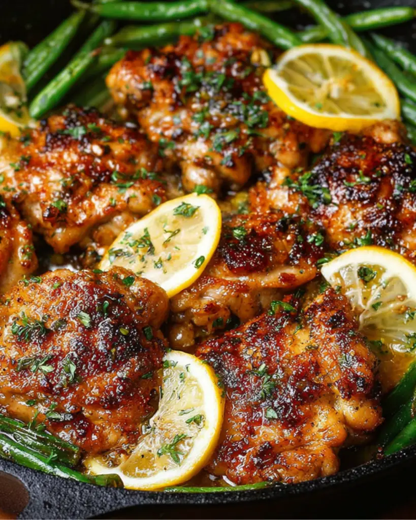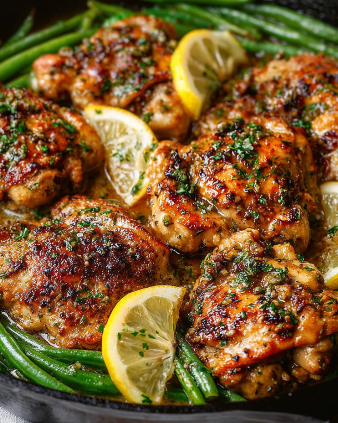With juicy chicken thighs bathed in a zesty lemon garlic butter sauce, paired with crisp green beans, it’s a meal that impresses without the fuss.