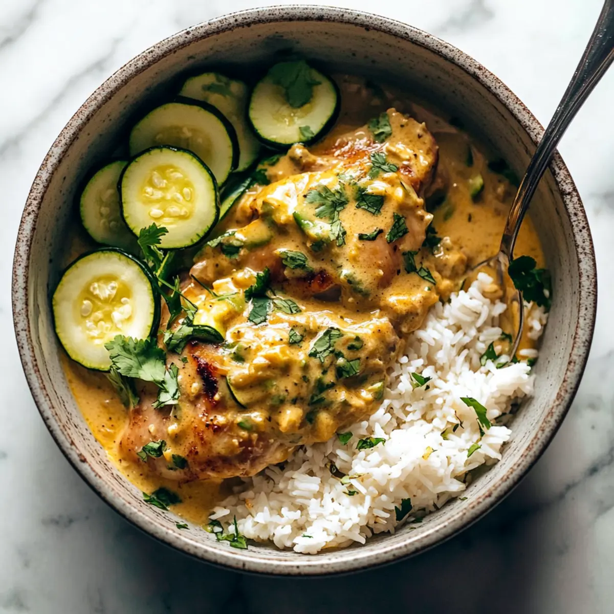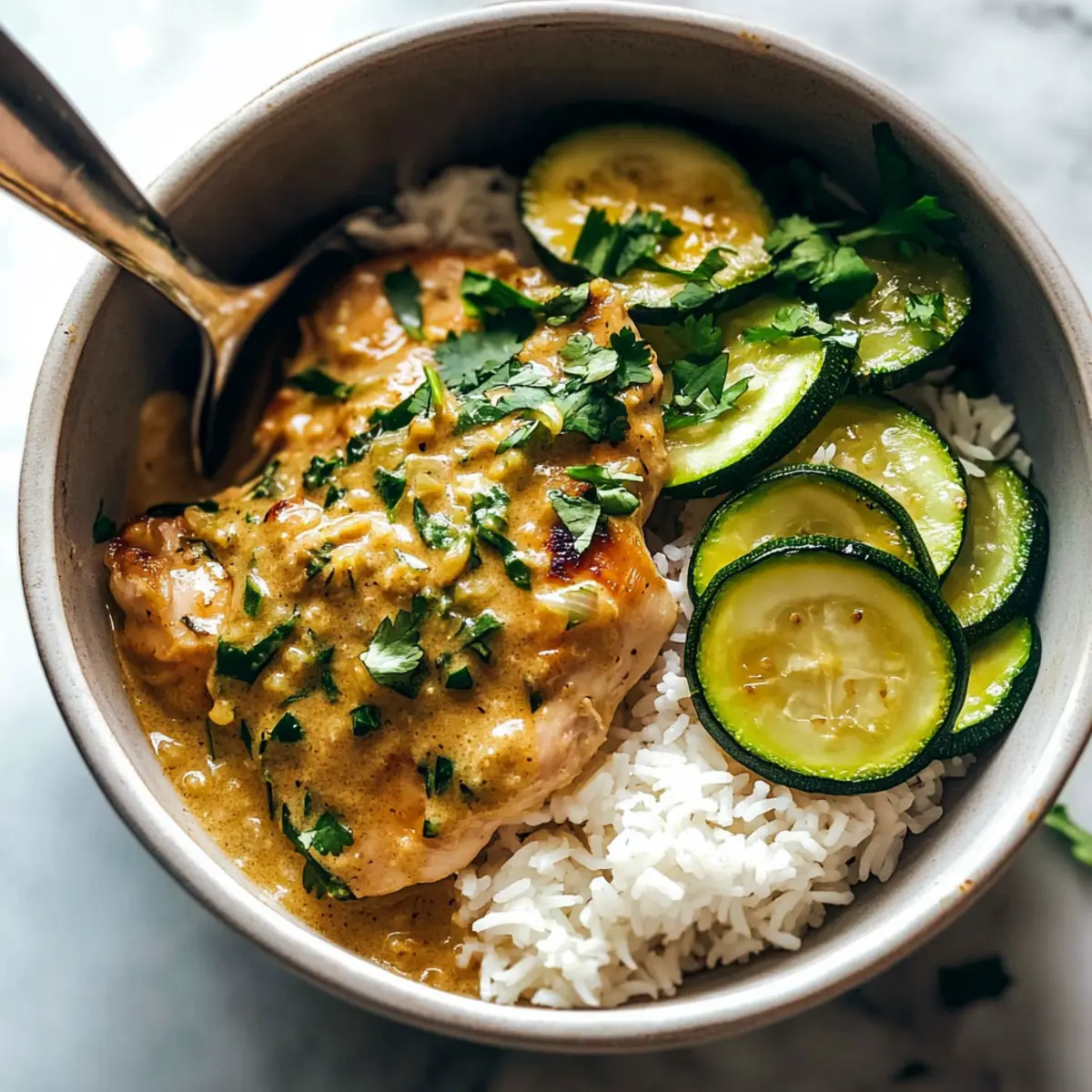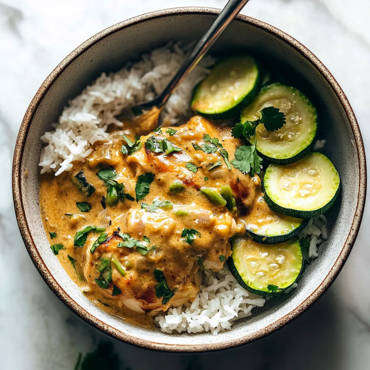 To serve, spoon fluffy jasmine rice onto each plate, then lay the creamy lemongrass chicken alongside it. Top the dish with the baked zucchini and garnish with your choice of fresh herbs, such as cilantro or basil. This vibrant presentation not only looks appetizing but also enhances the tropical experience of your meal.
