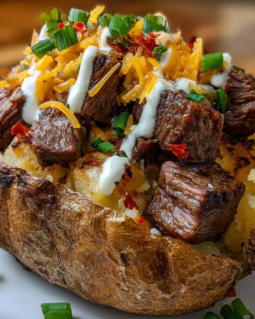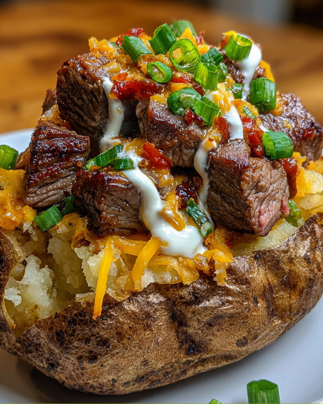 PrintLoaded Baked Potato with Steak Bites: A Must-Try Recipe!